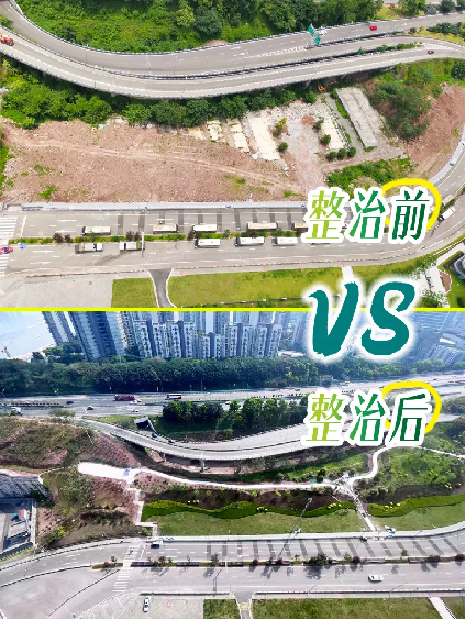 项目占地1万平方米,原本是一片扬尘污染、垃圾堆积的荒坡菜地。江北区以“绿化+休闲”为治理理念,创新建立跨部门协同机制,推动生态修复与环境提升齐头并进。