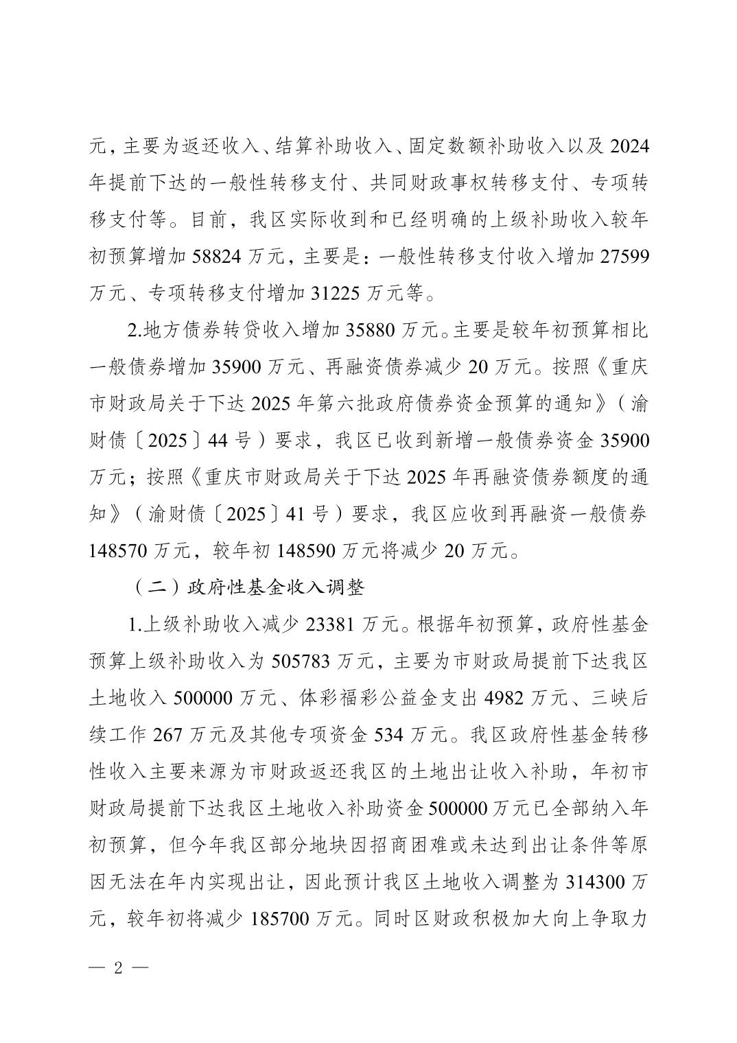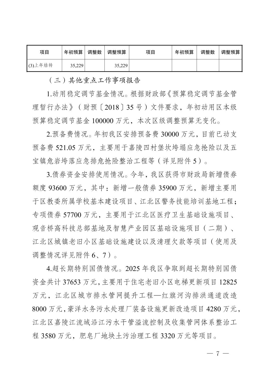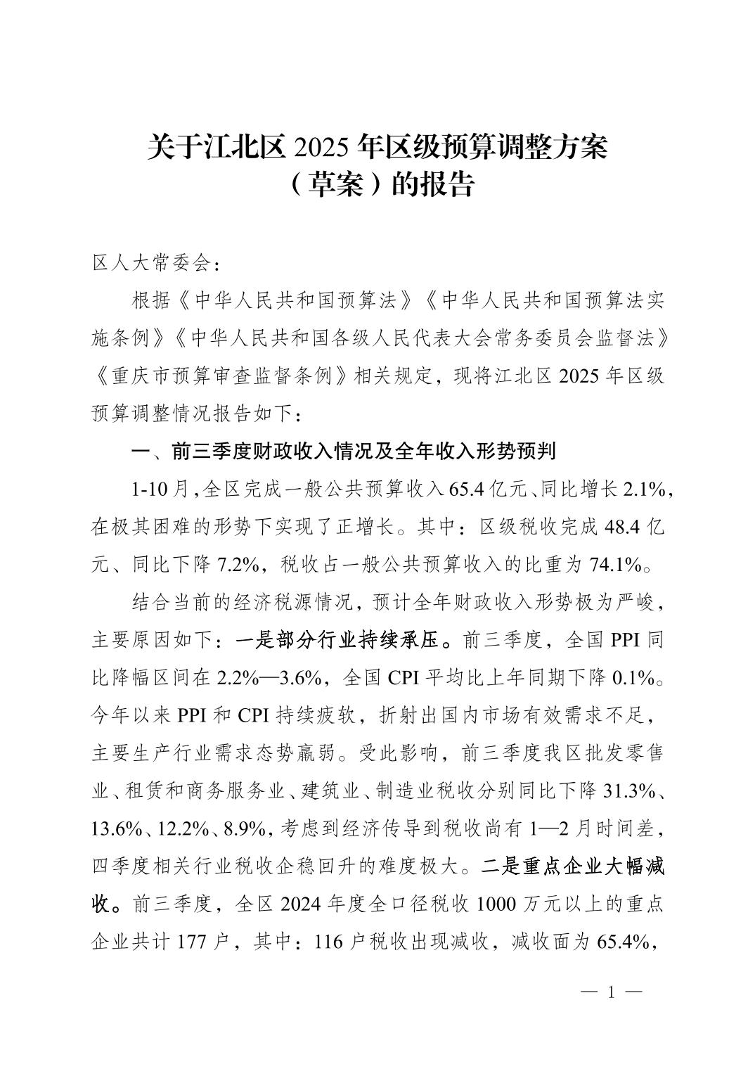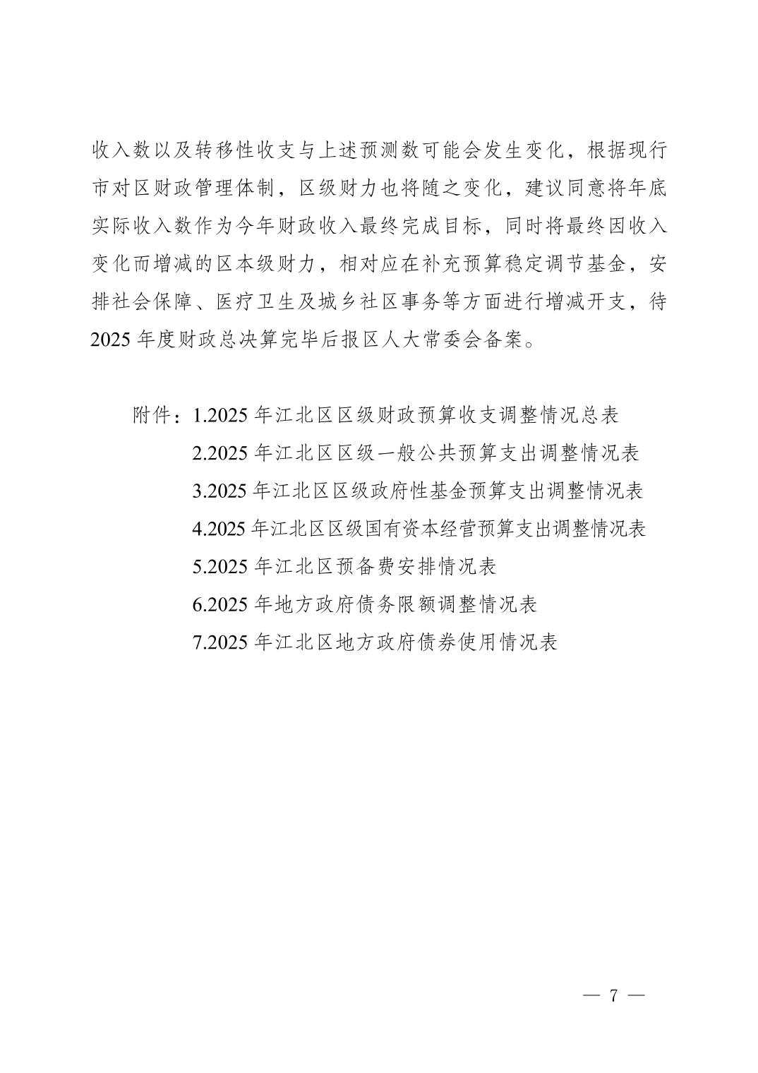 关于江北区2025年区级预算调整方案的报告