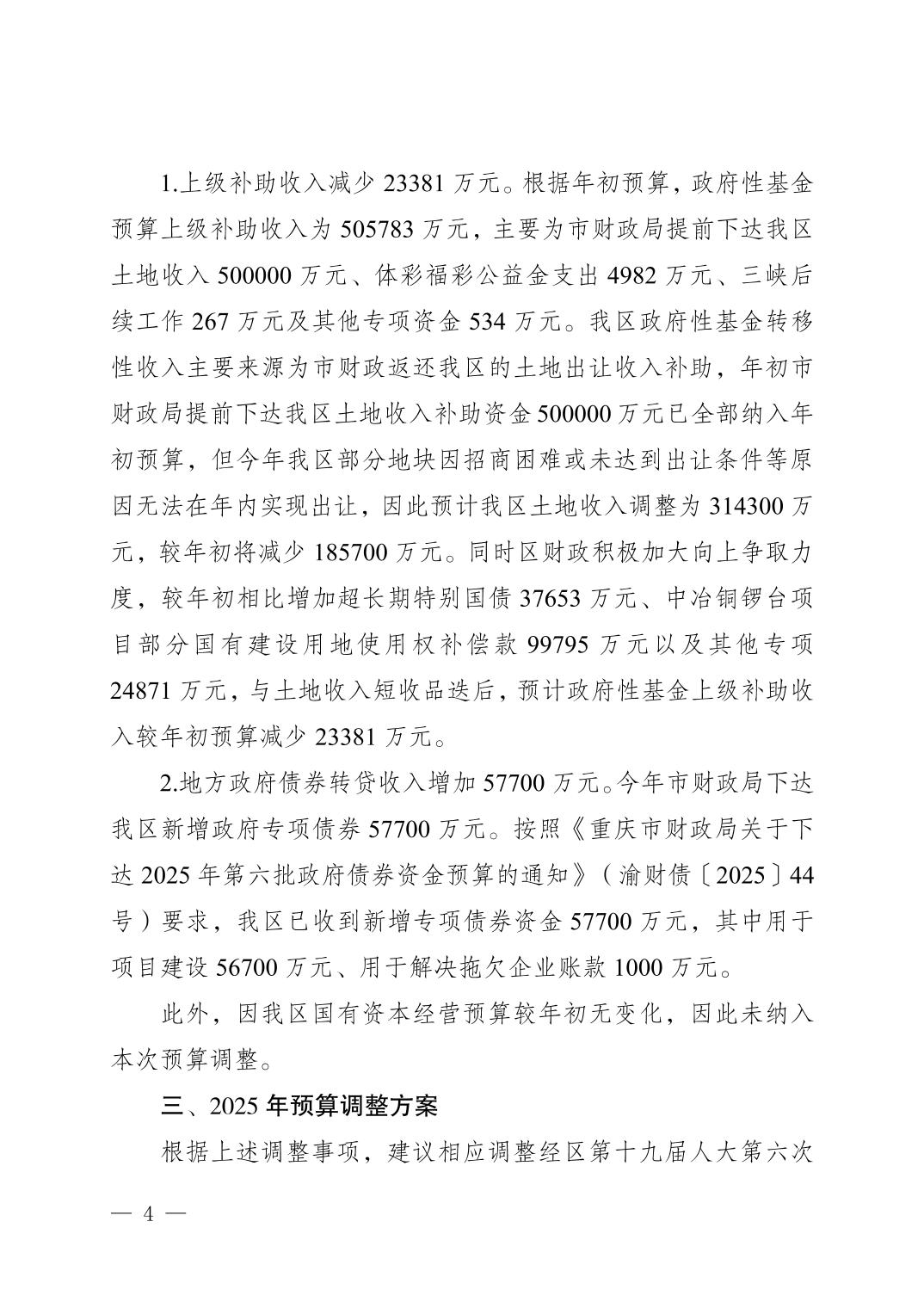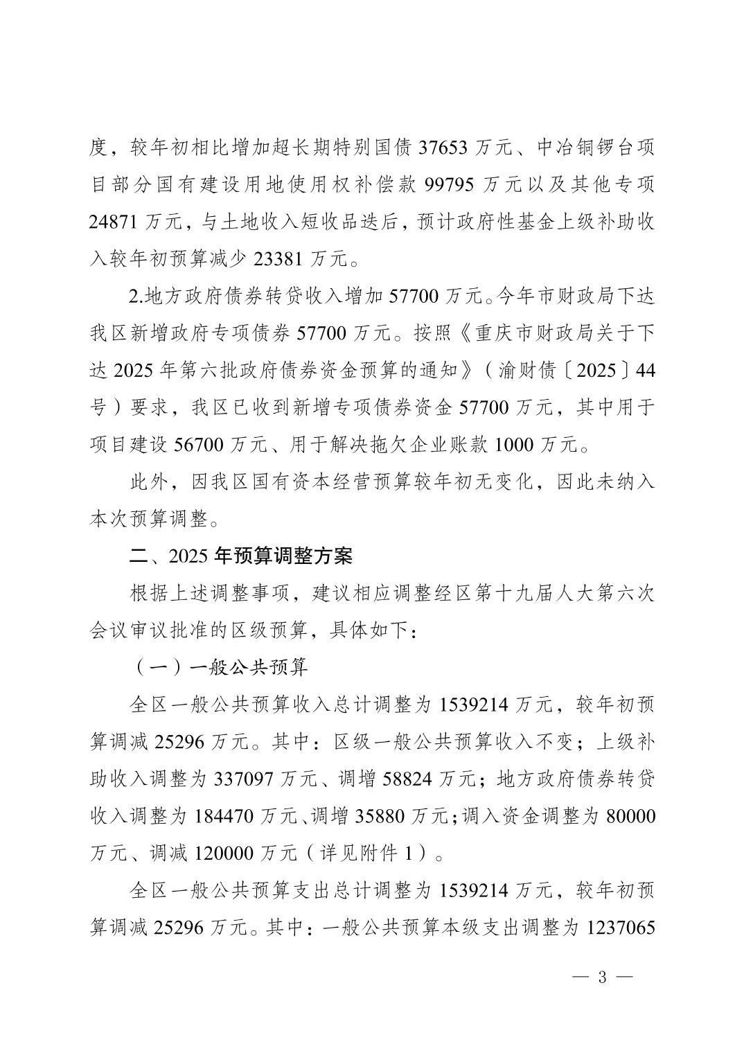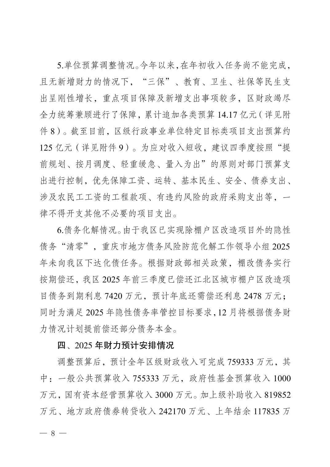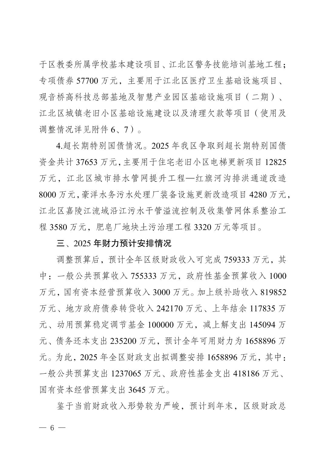 关于江北区2025年区级预算调整方案的报告