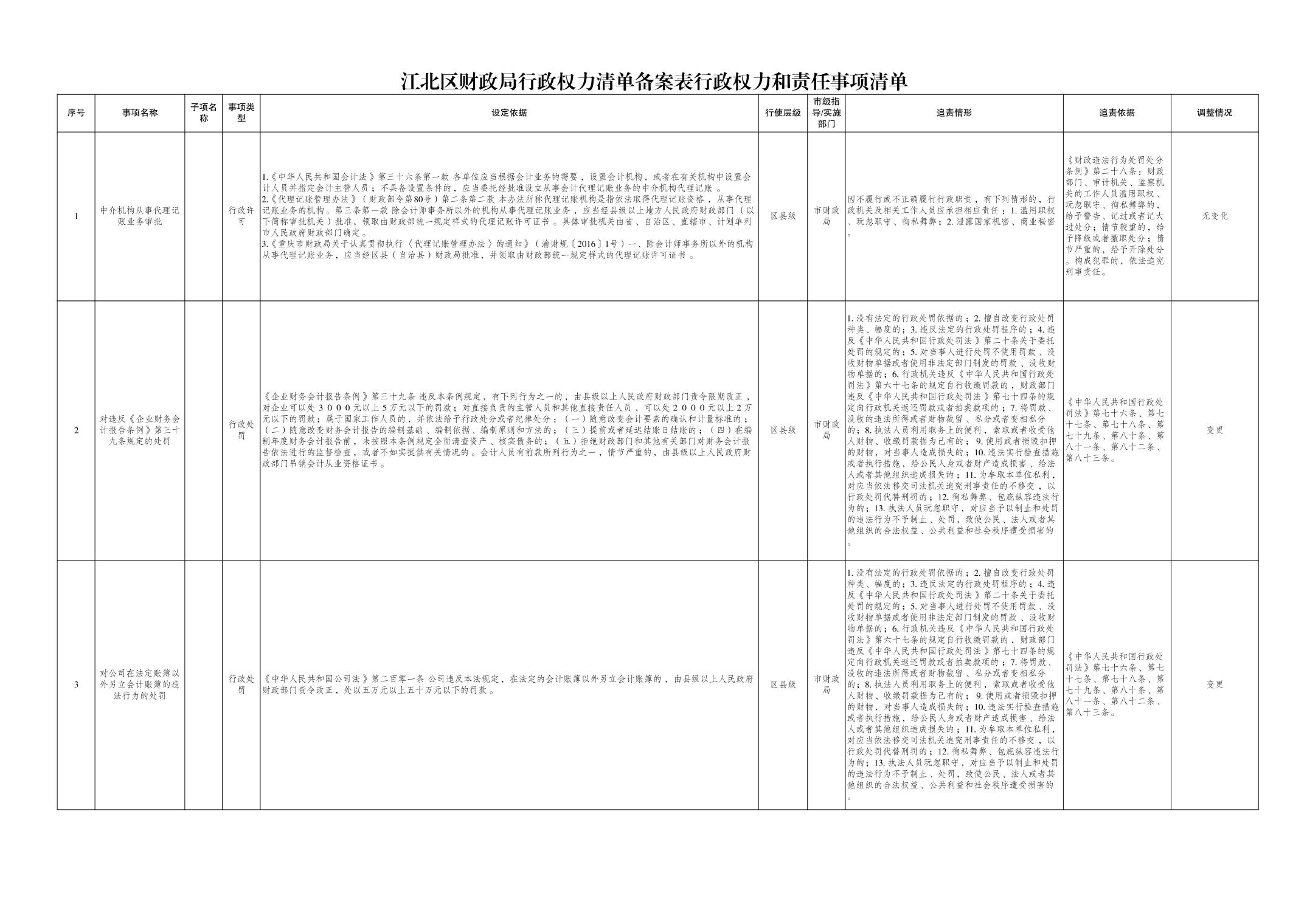 重庆市江北区财政局行政权力和责任事项清单(2023年)
