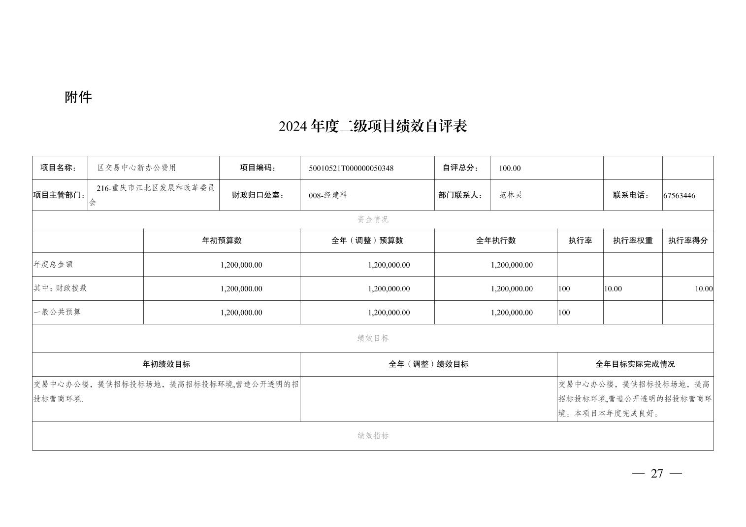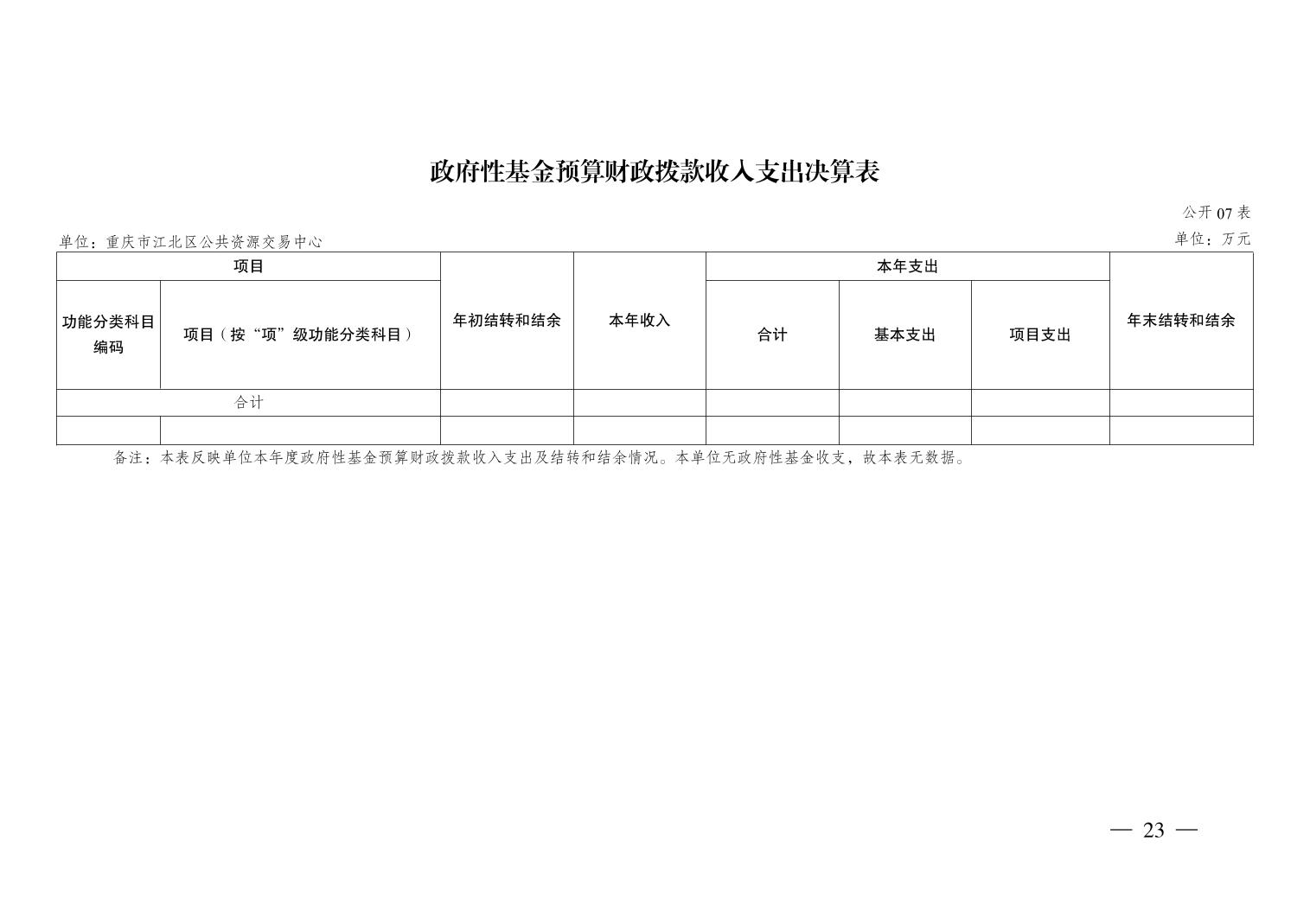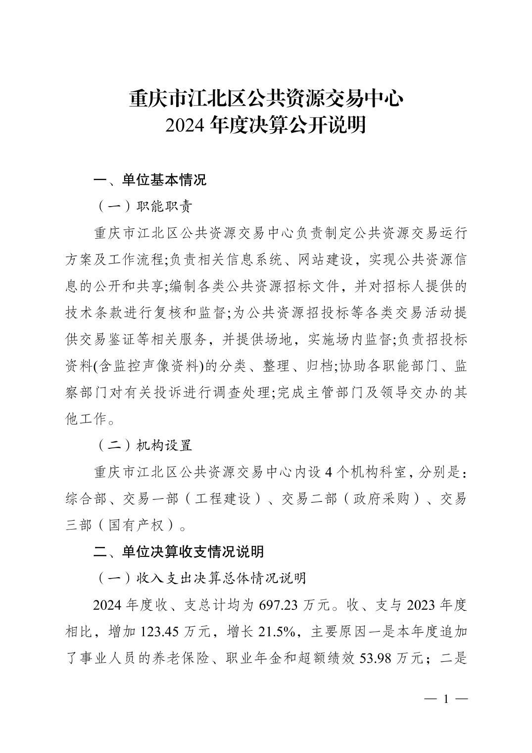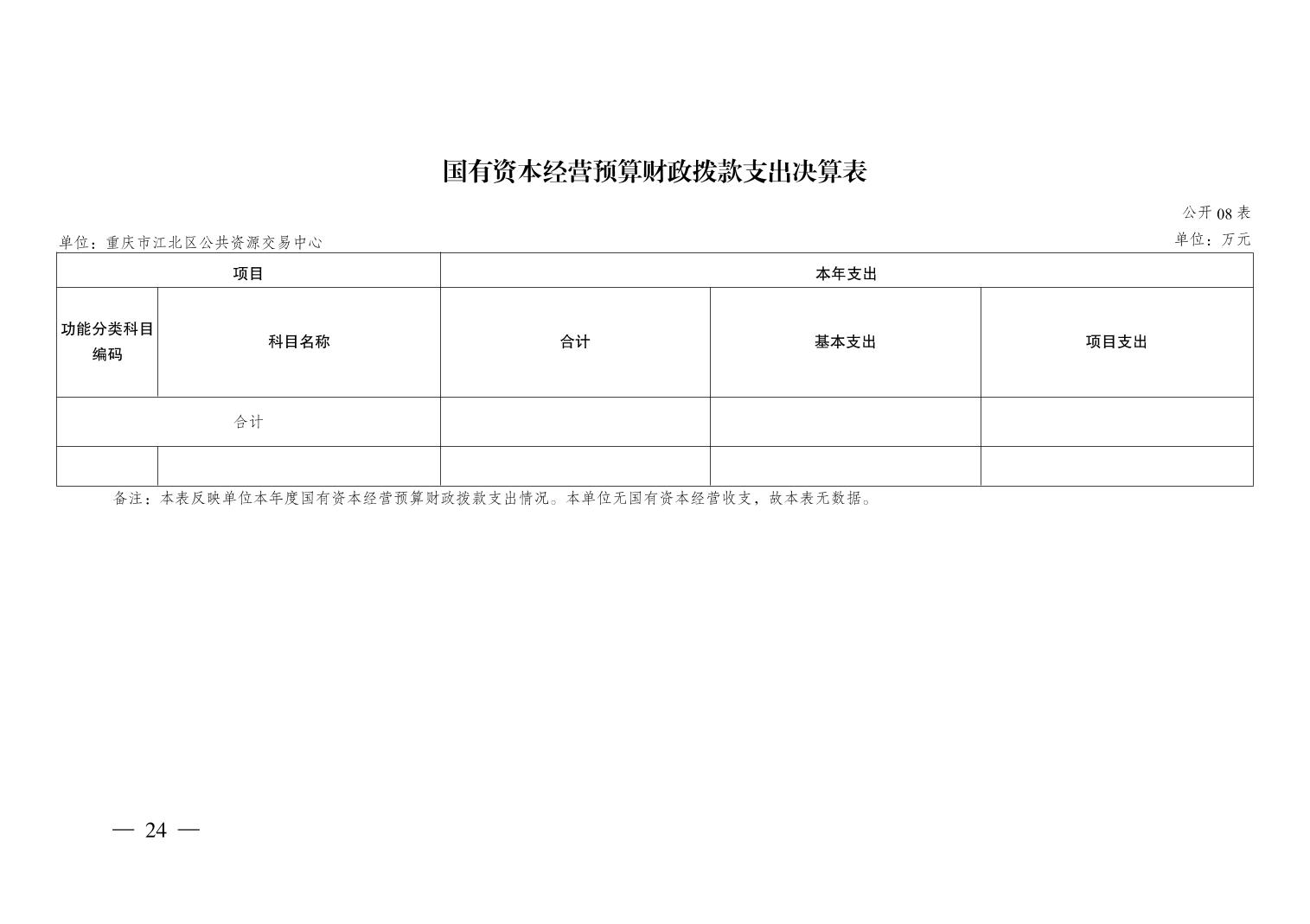 重庆市江北区公共资源交易中心2024年决算公开说明及公开报表