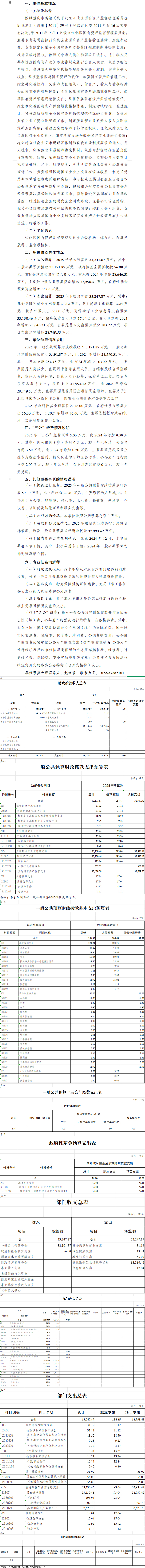 重庆市江北区国有资产监督管理委员会(本级)2025年单位预算情况说明