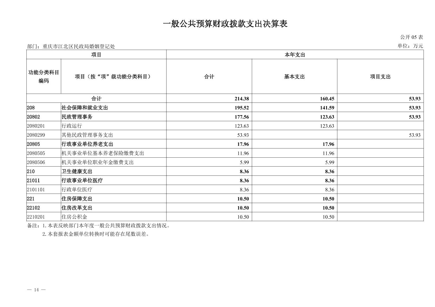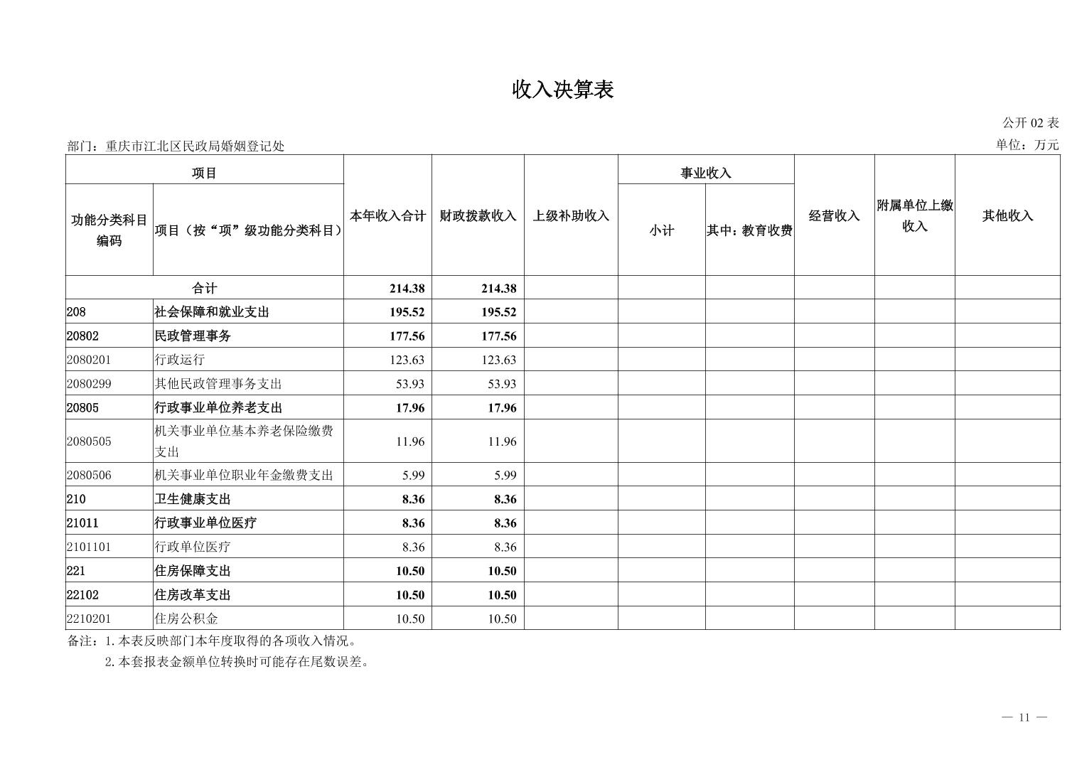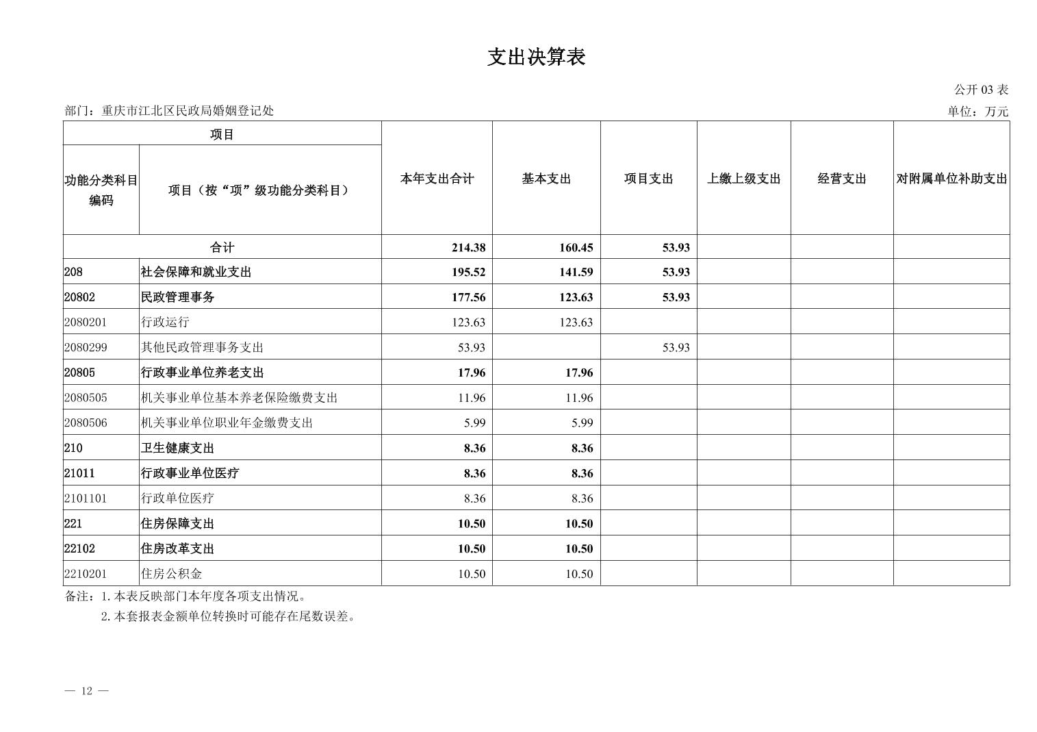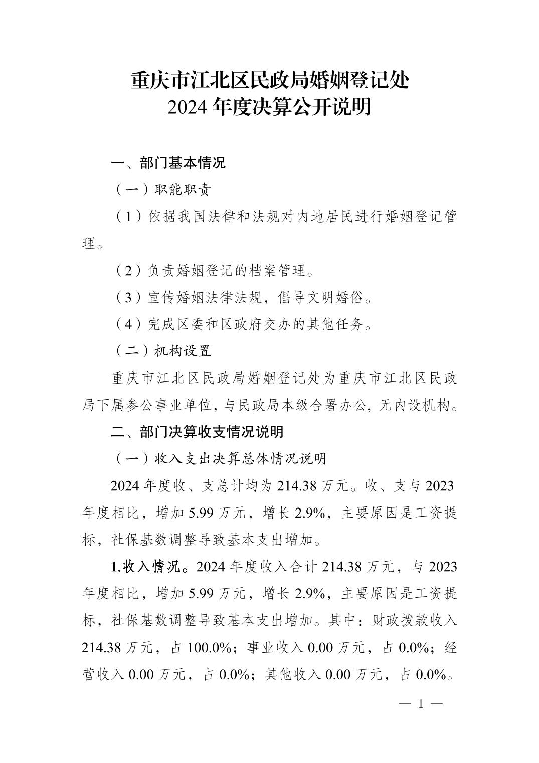 重庆市江北区民政局婚姻登记处2024年度决算公开说明及公开报表