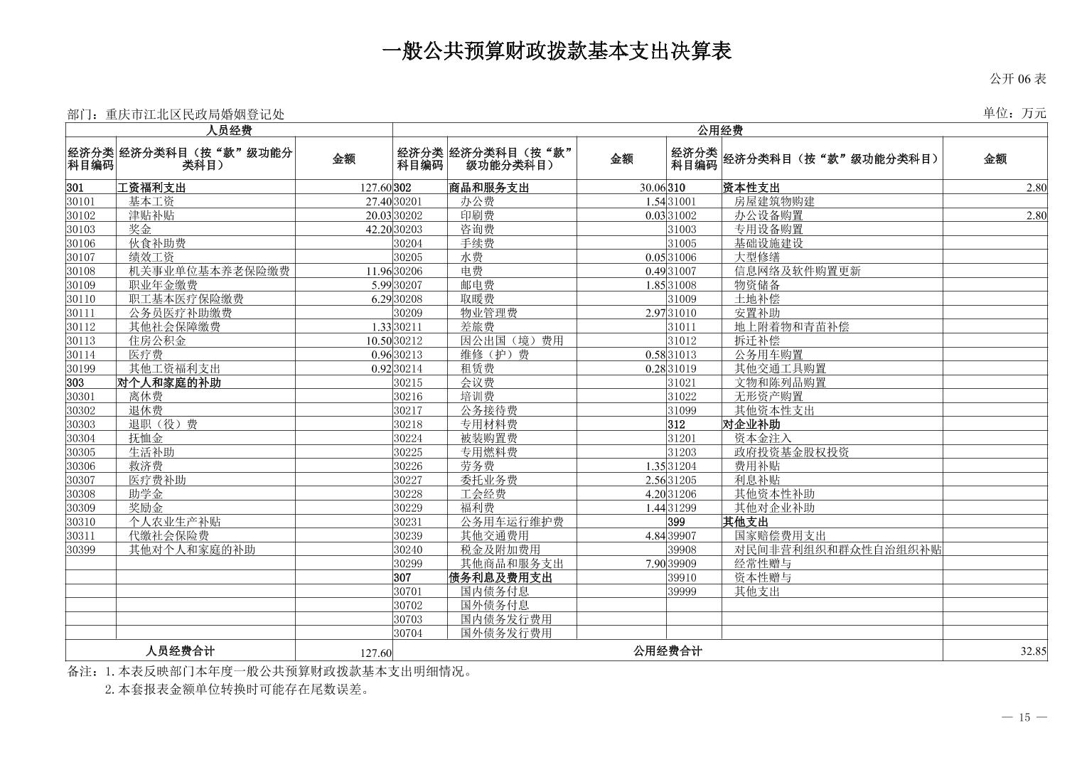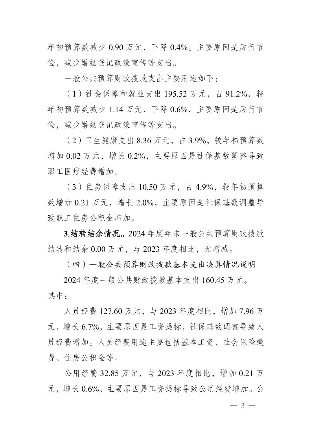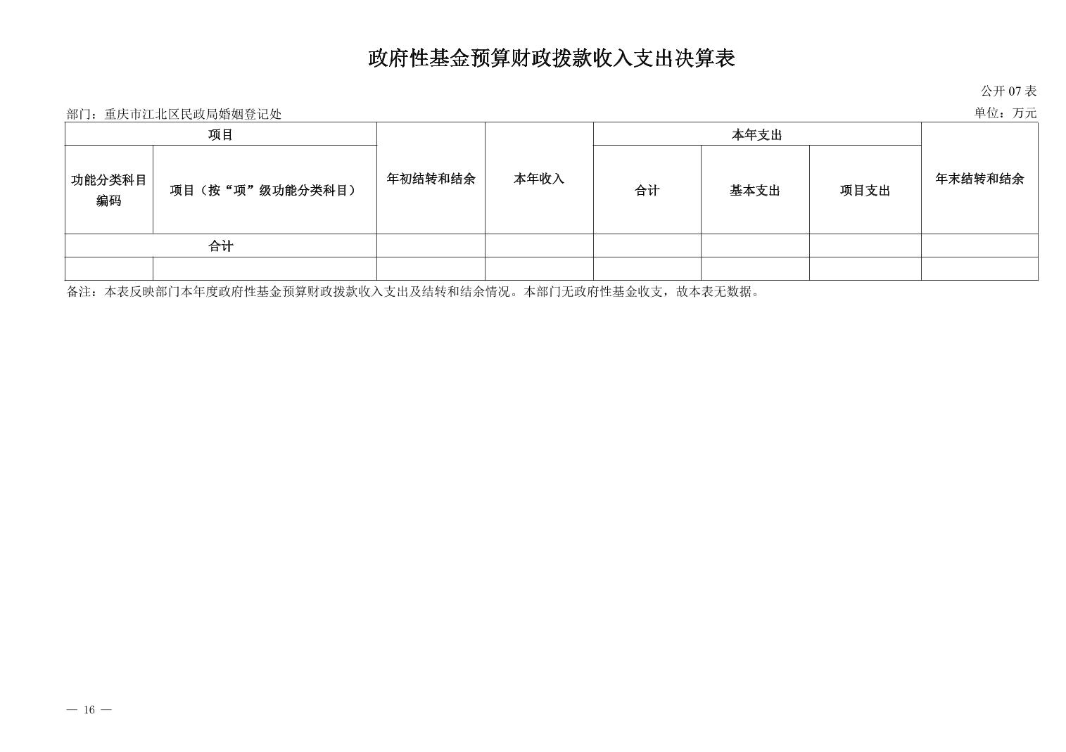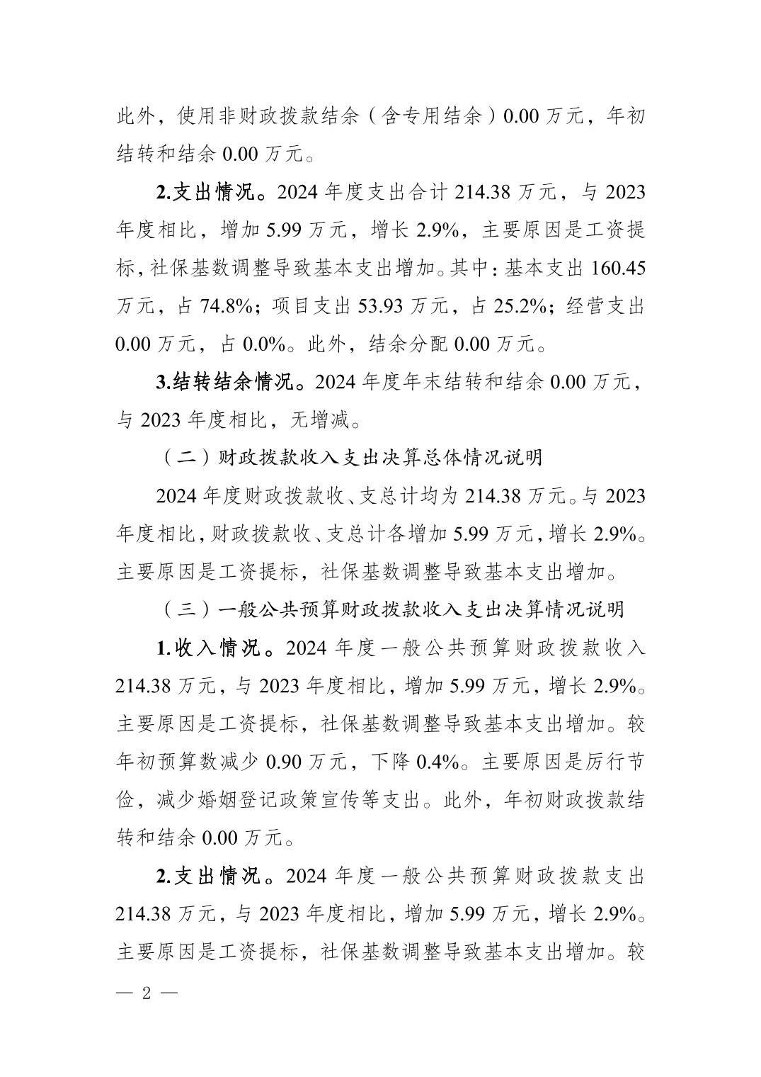 重庆市江北区民政局婚姻登记处2024年度决算公开说明及公开报表