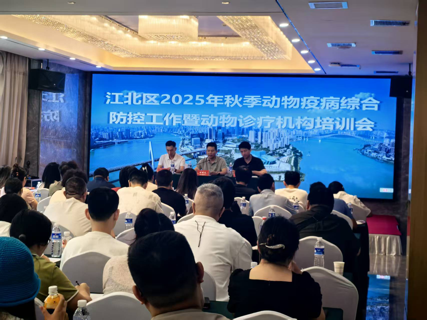 9月17日至18日,江北区农业农村委组织召开全区2025年秋季动物疫病综合防控工作暨动物诊疗机构培训会,全面部署秋季动物疫病防控工作,并组织市环保、市动物疫控中心、市农业执法总队及区疾控中心专家开展授课。各街道相关负责人、宠物医院、诊疗机构负责人等100余人参会。