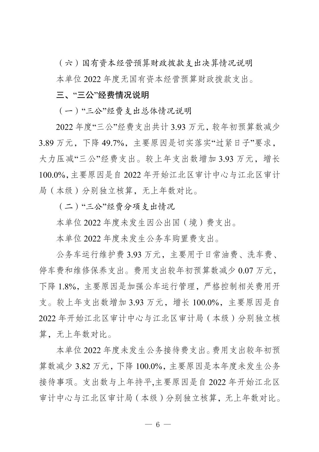 重庆市江北区审计局2022年度单位决算情况说明