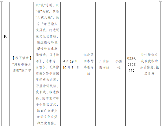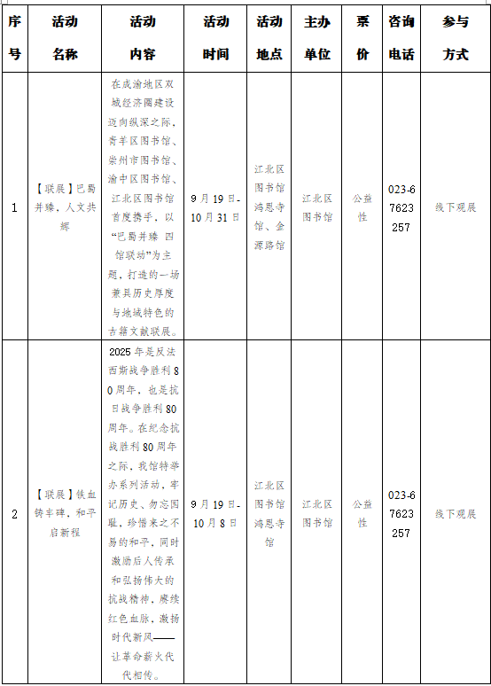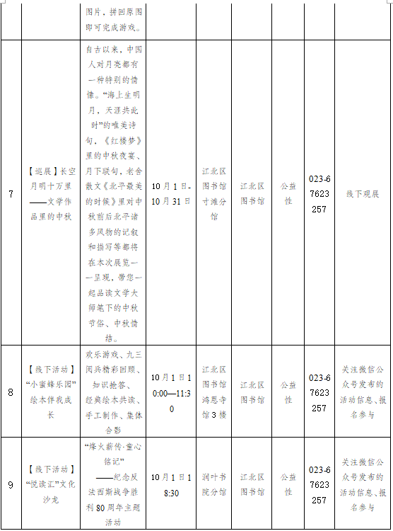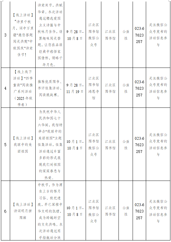 重庆市江北区2025年10月1日-10月31日主要群文活动预告