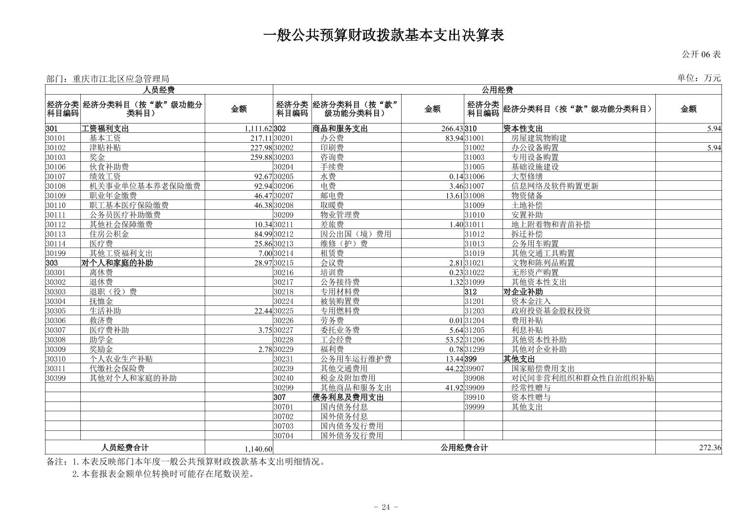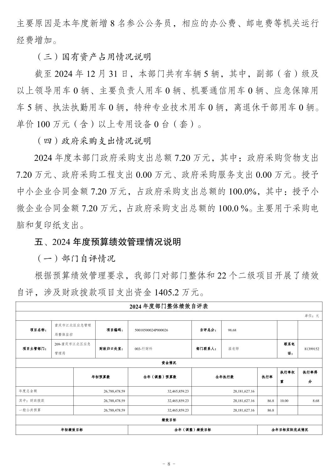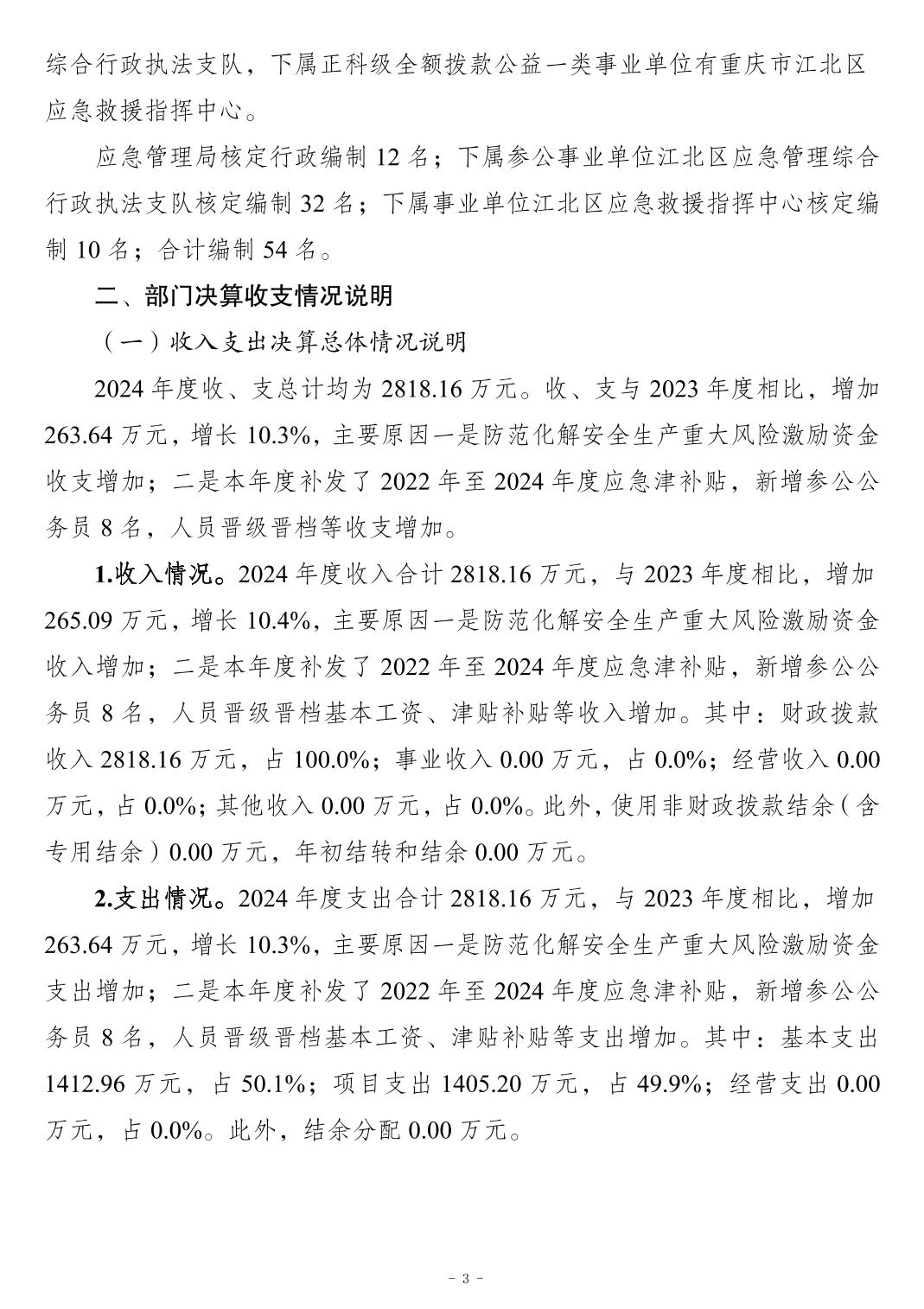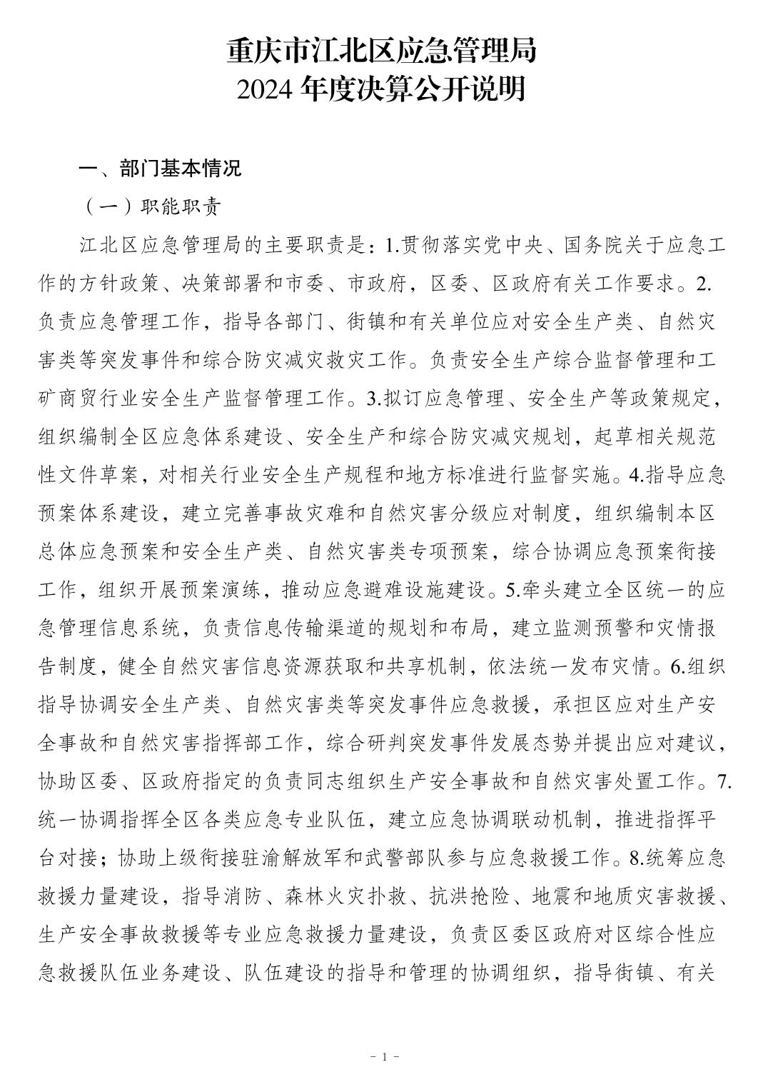 重庆市江北区应急管理局2024年度决算公开说明及公开报表