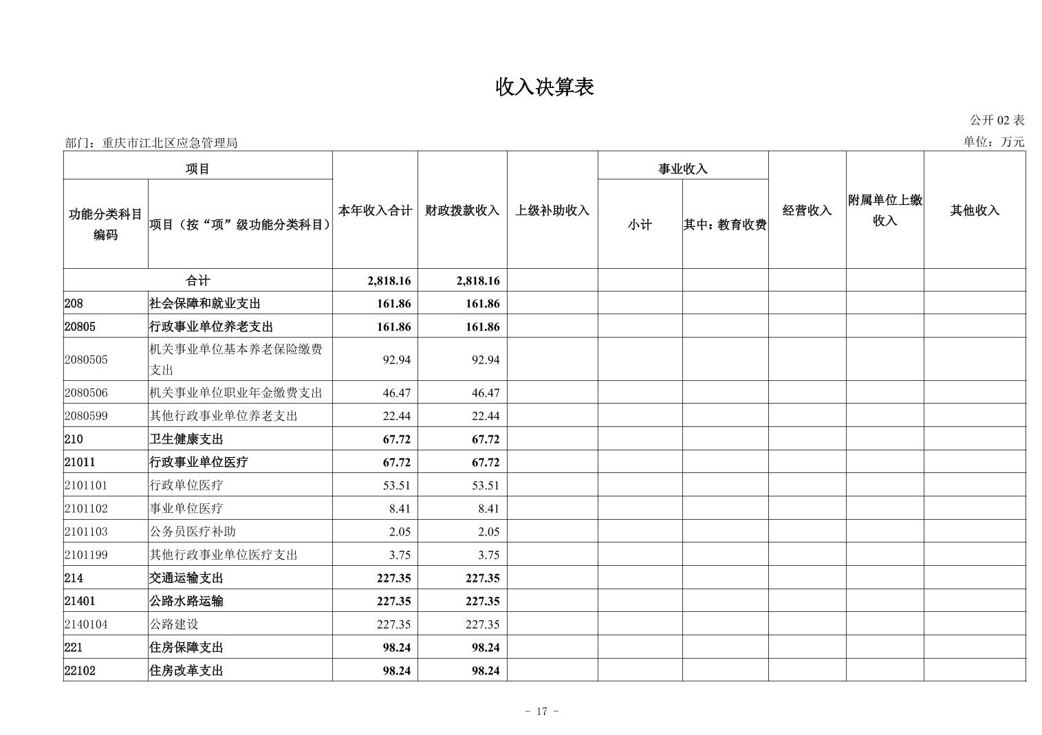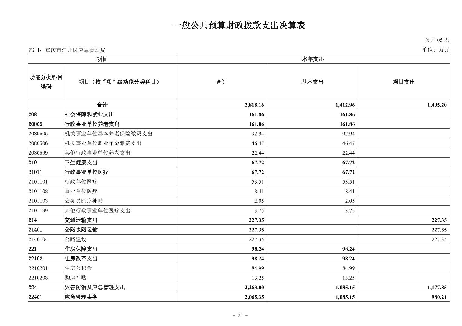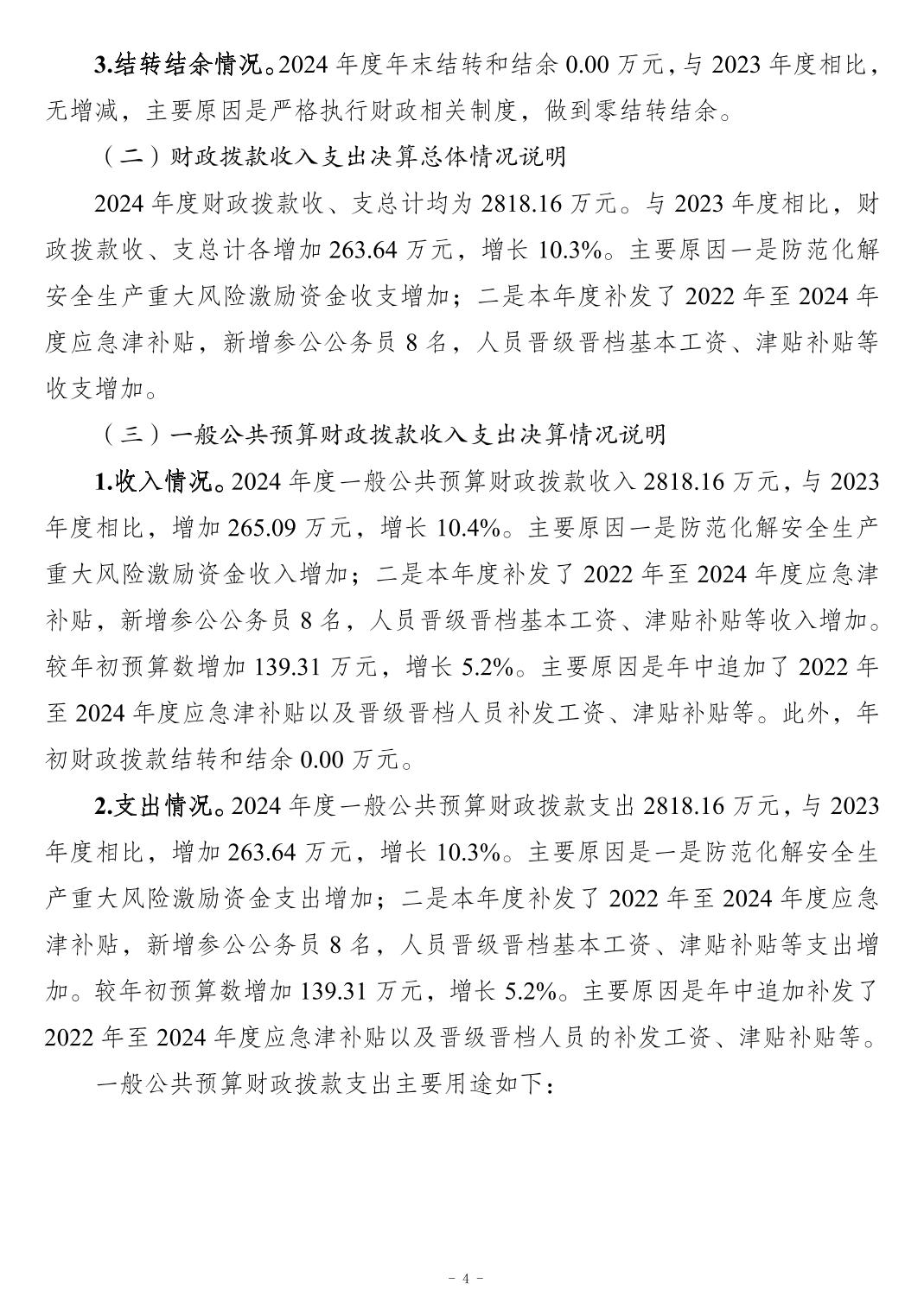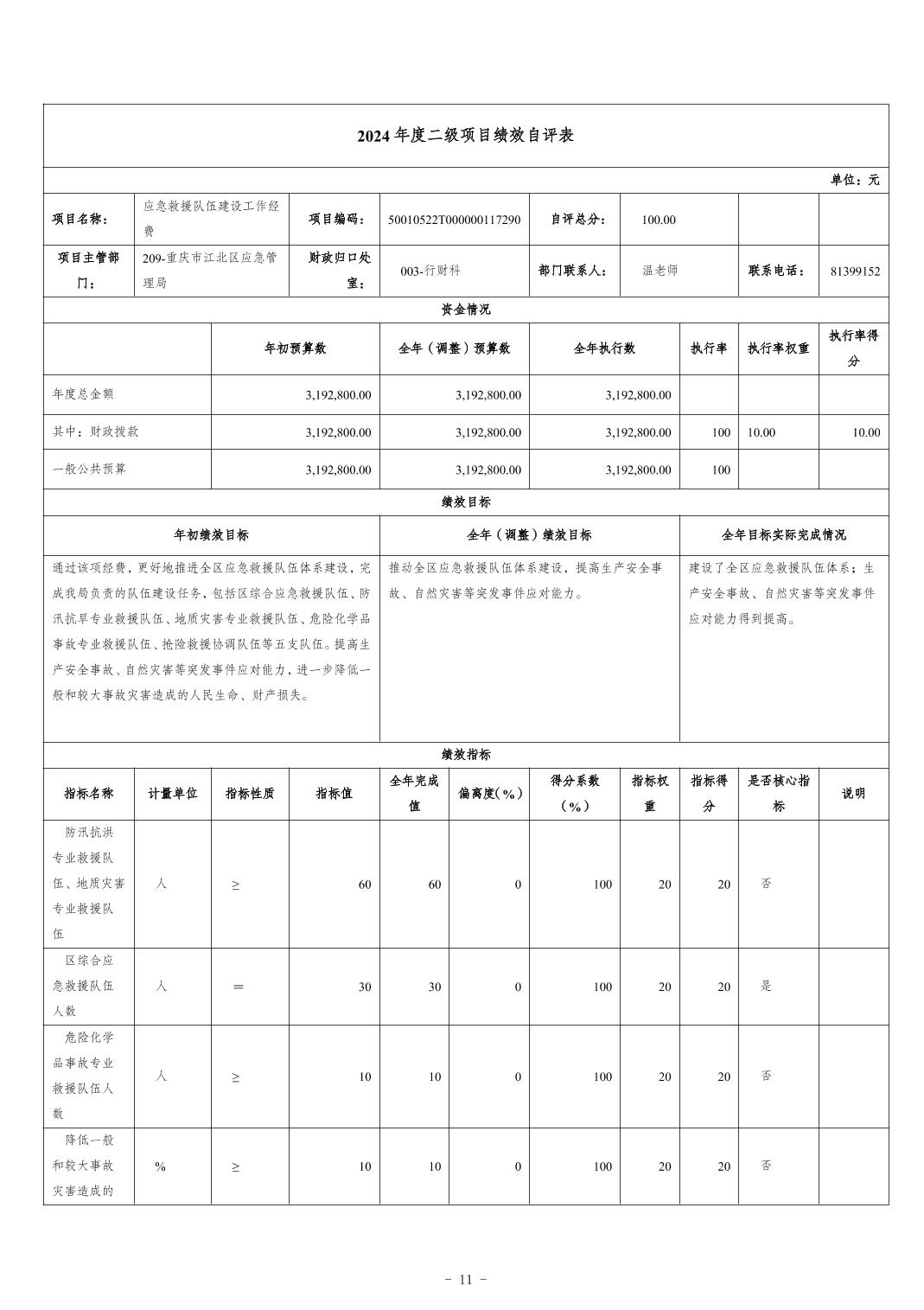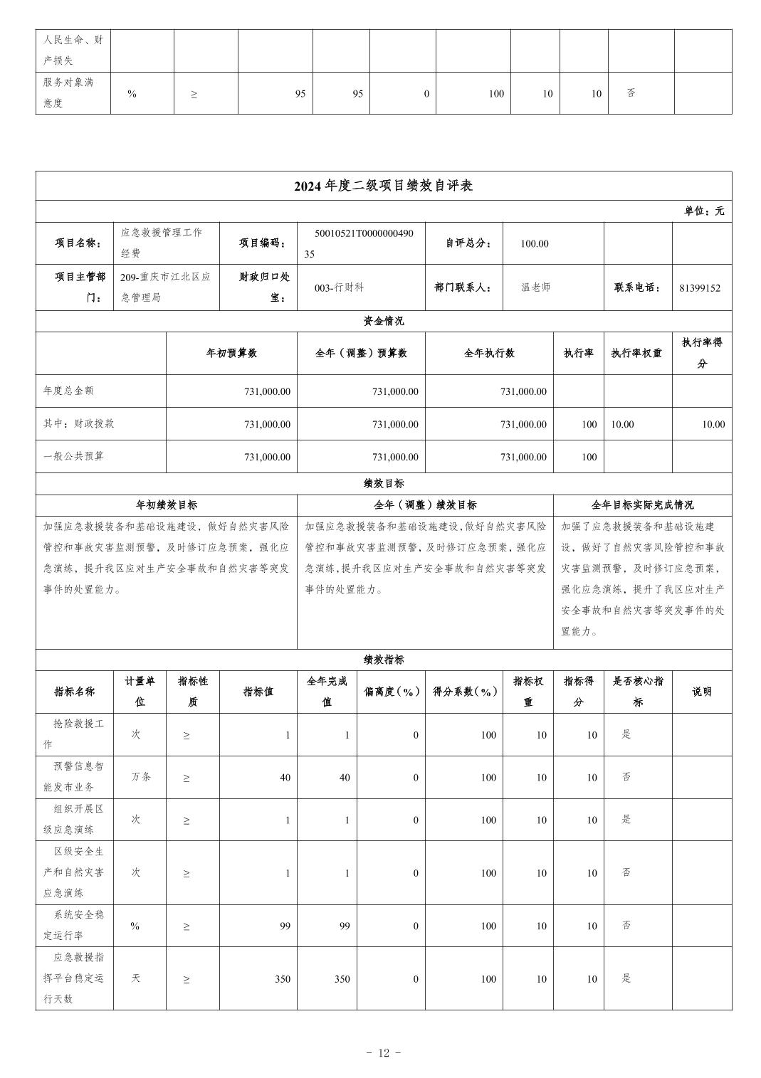 重庆市江北区应急管理局2024年度决算公开说明及公开报表