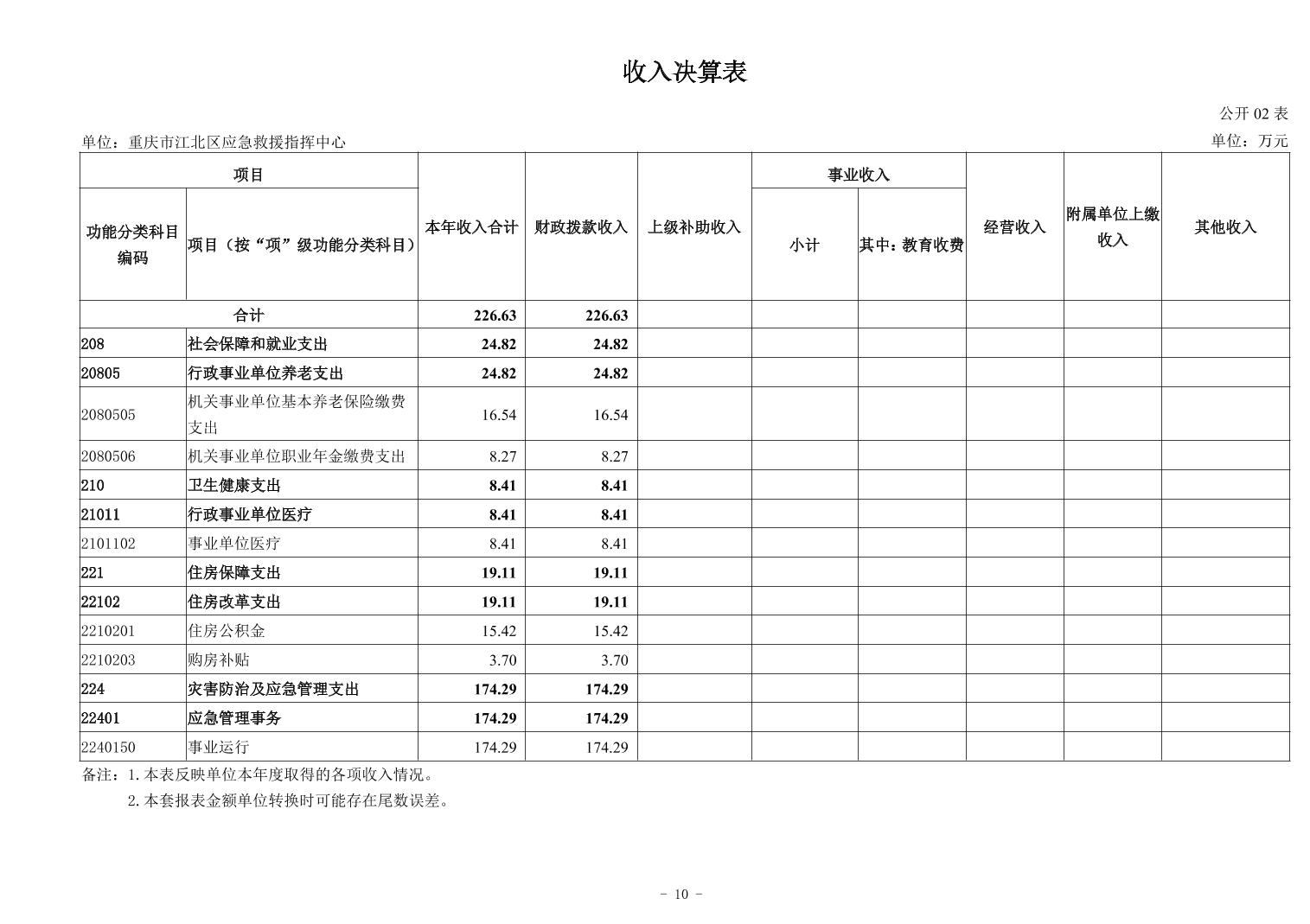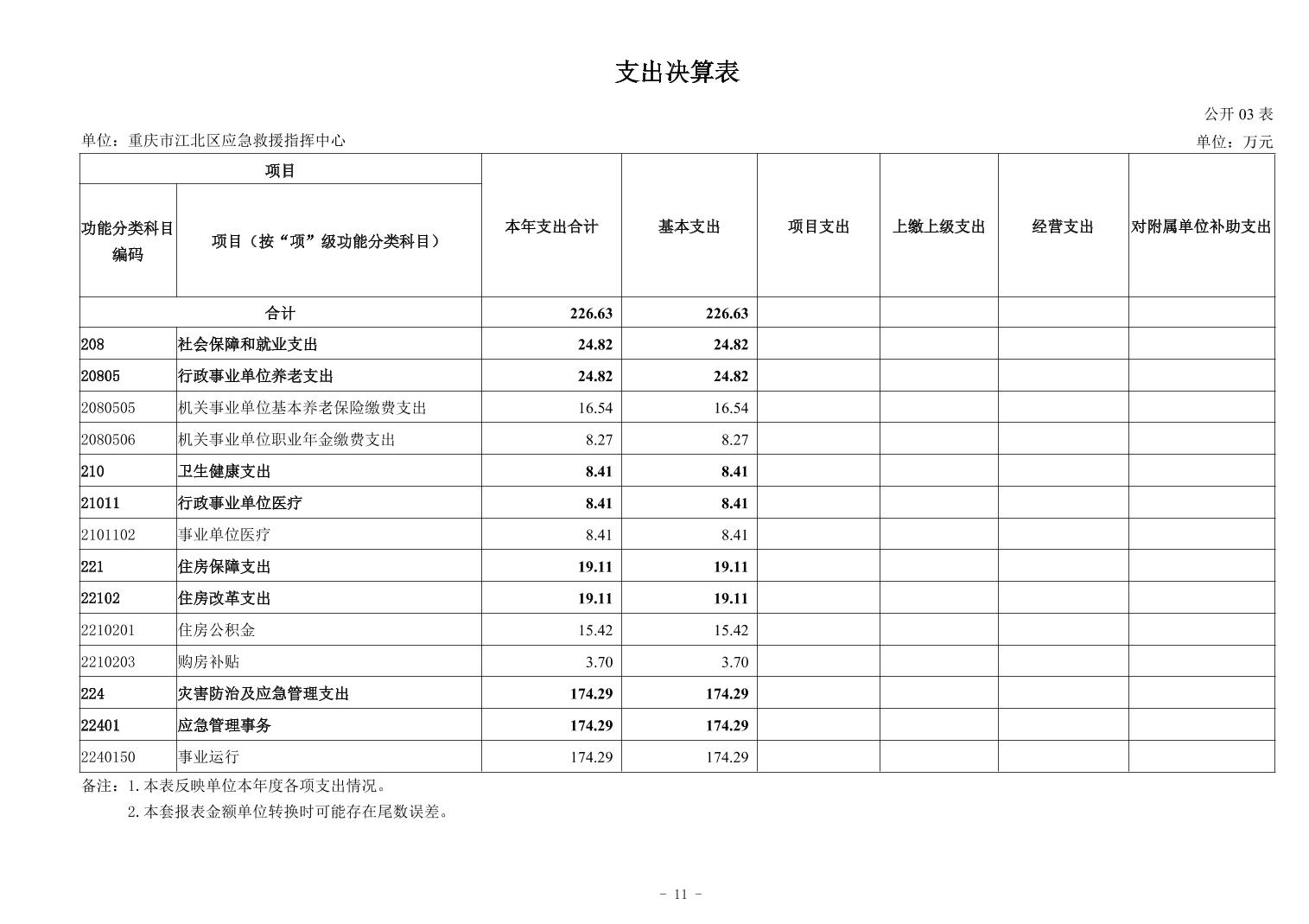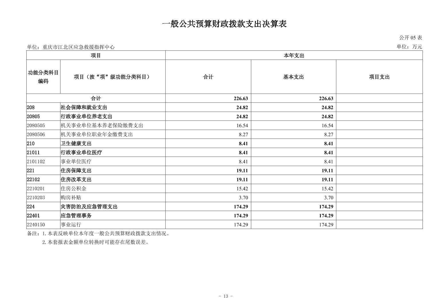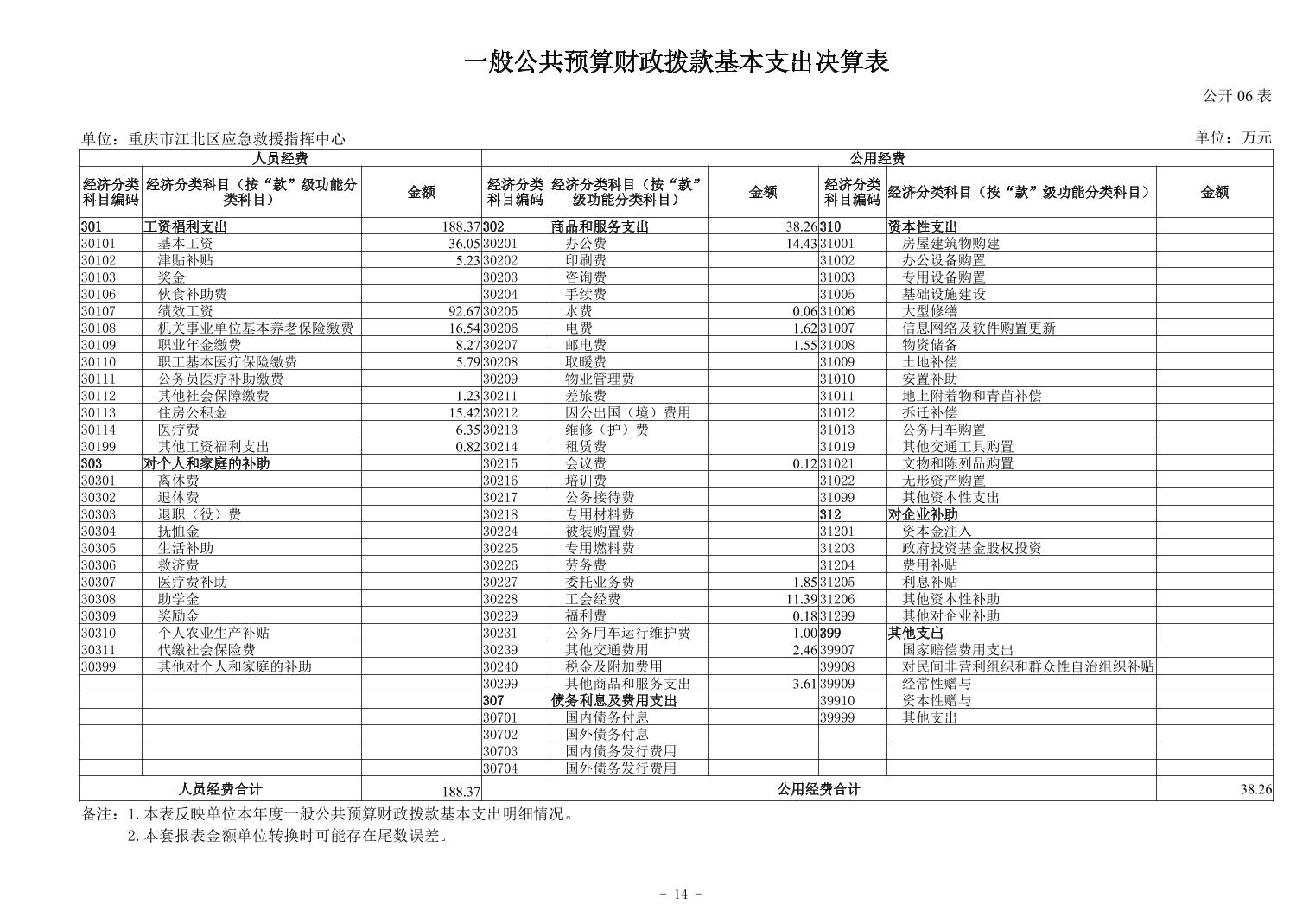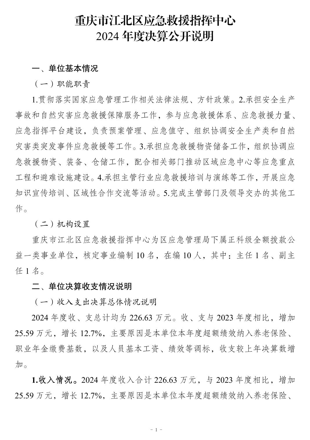 重庆市江北区应急救援指挥中心2024年度决算公开说明及公开报表