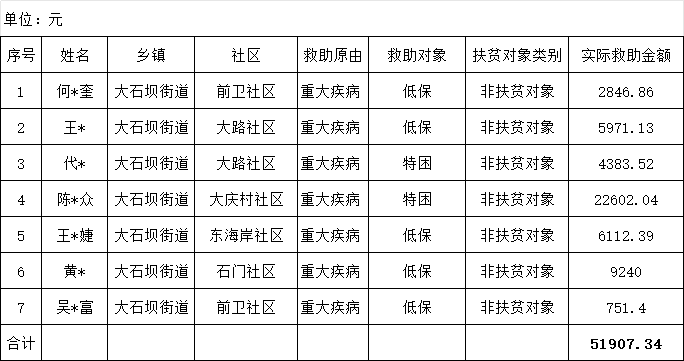 江北区大石坝街道2025年8月临时救助花名册