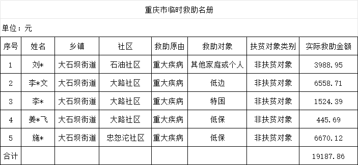 江北区大石坝街道2025年10月临时救助花名册