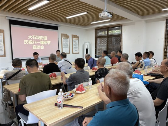 座谈会在雄壮激昂的国歌声中庄严开启。大石坝街道相关负责人满怀敬意,向在座的退役军人及军属致以崇高的节日问候和诚挚的感谢,深情回顾了人民军队的丰功伟绩,高度赞扬了退役军人们“退役不退志、退伍不褪色”的宝贵精神,以及为街道建设发展洒下的辛勤汗水。