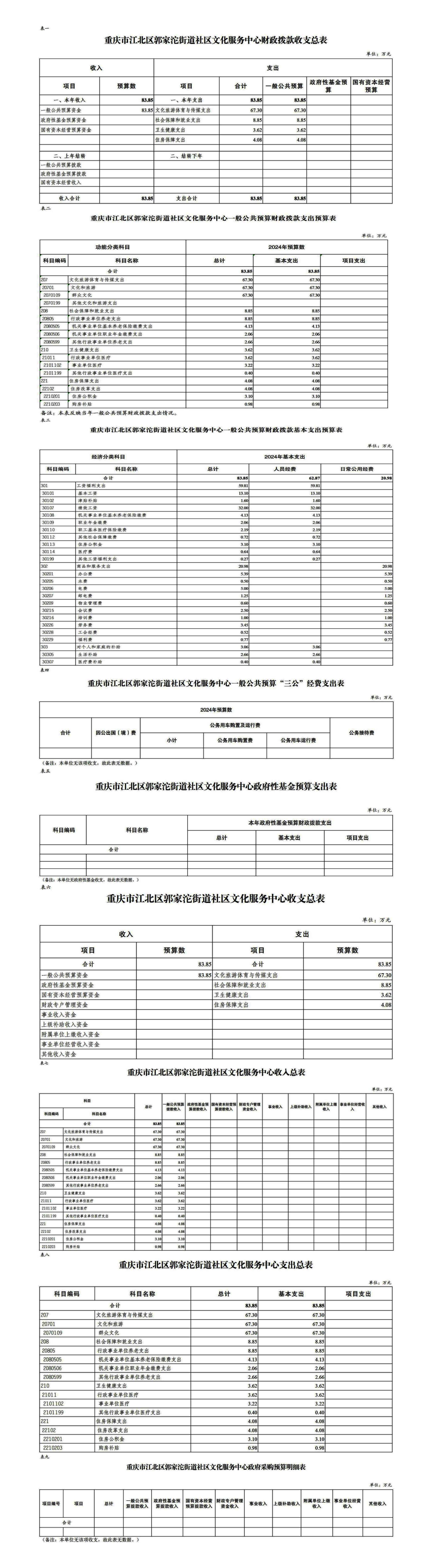 重庆市江北区郭家沱街道社区文化服务中心2024年单位预算情况说明