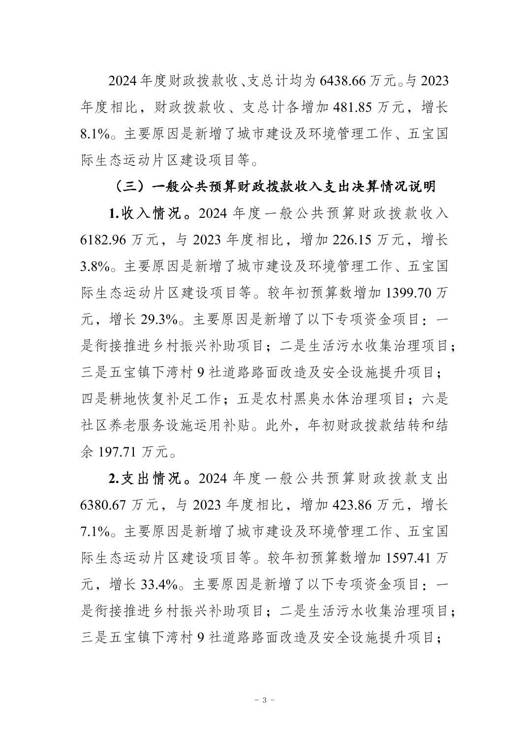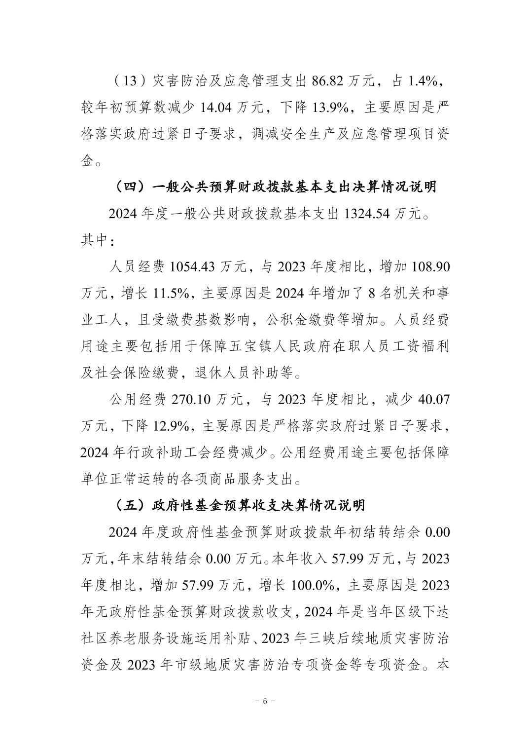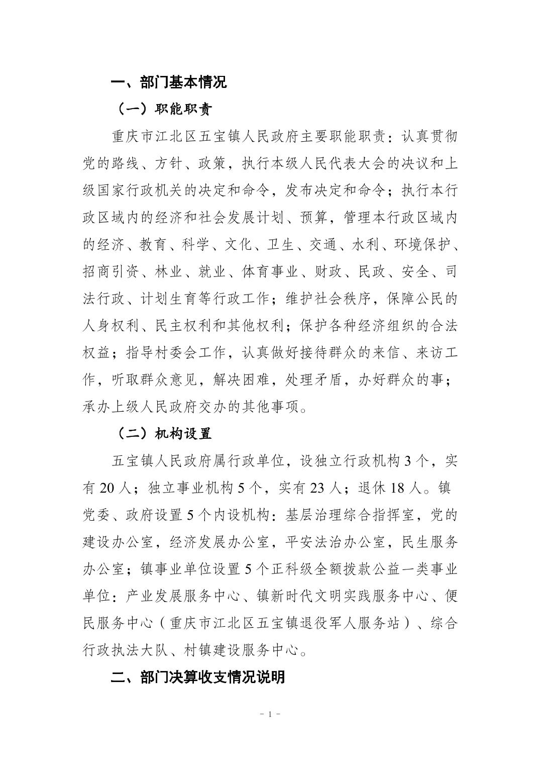 重庆市江北区五宝镇人民政府2024年度决算公开情况说明