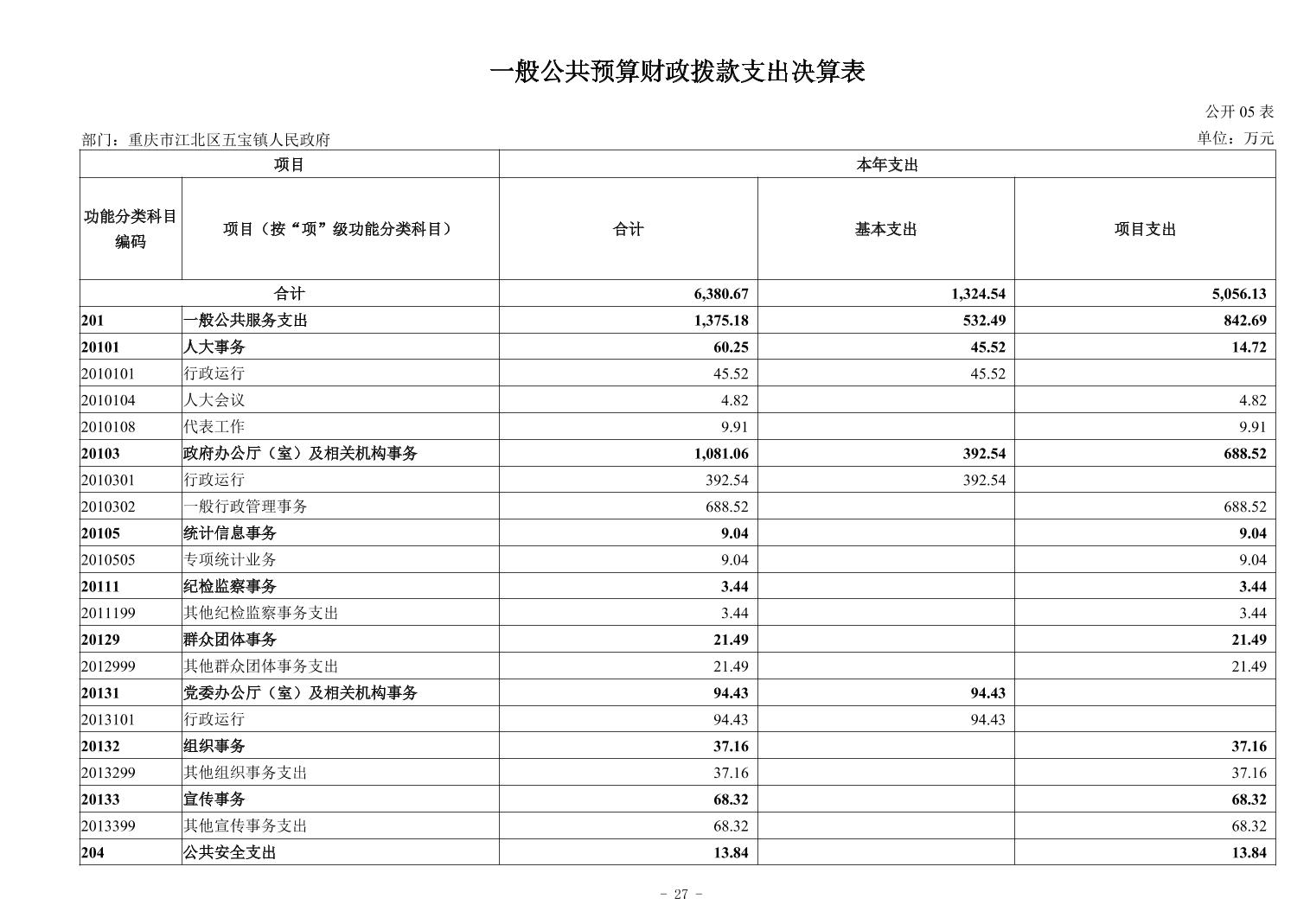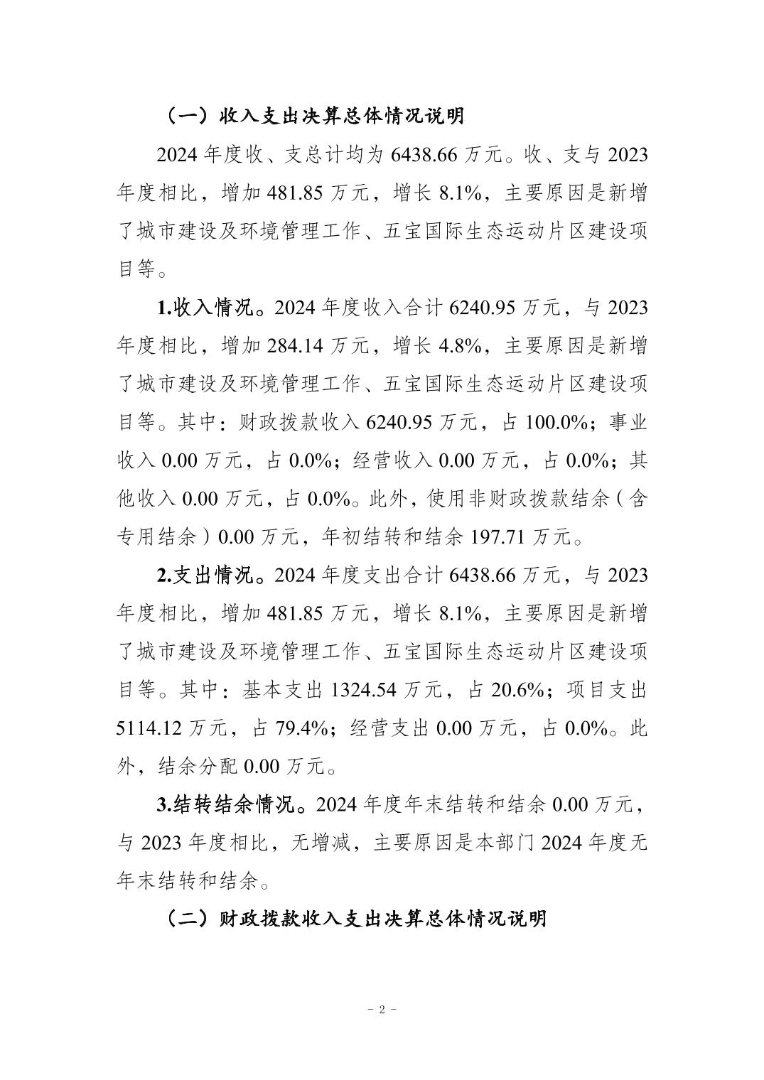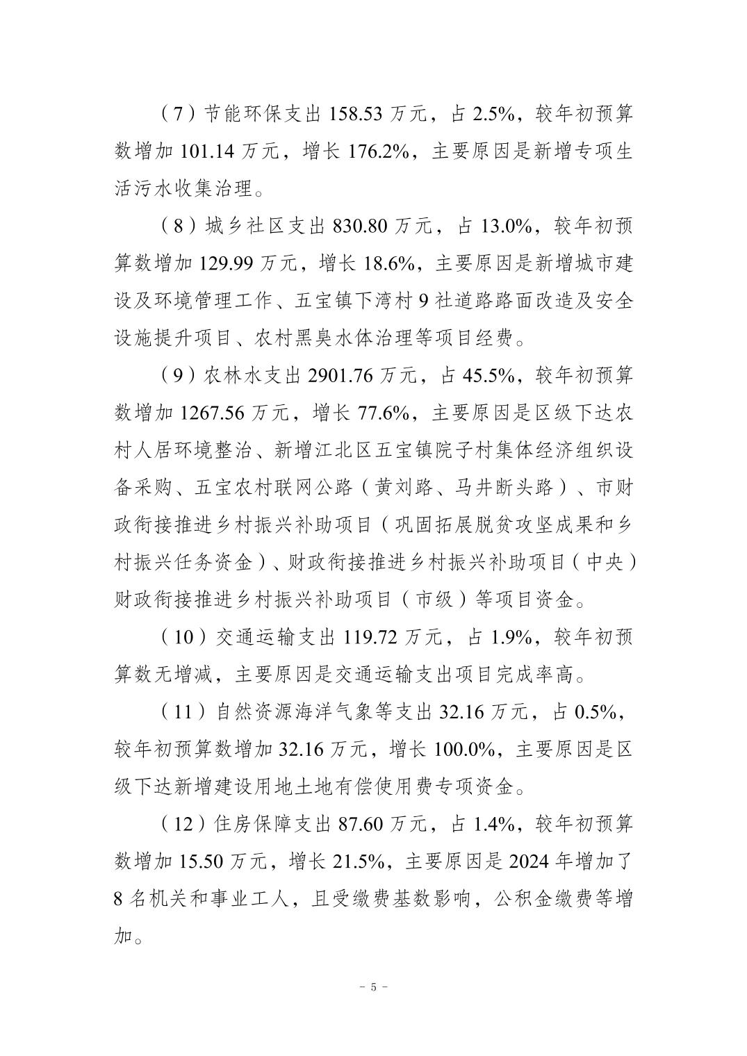 重庆市江北区五宝镇人民政府2024年度决算公开情况说明