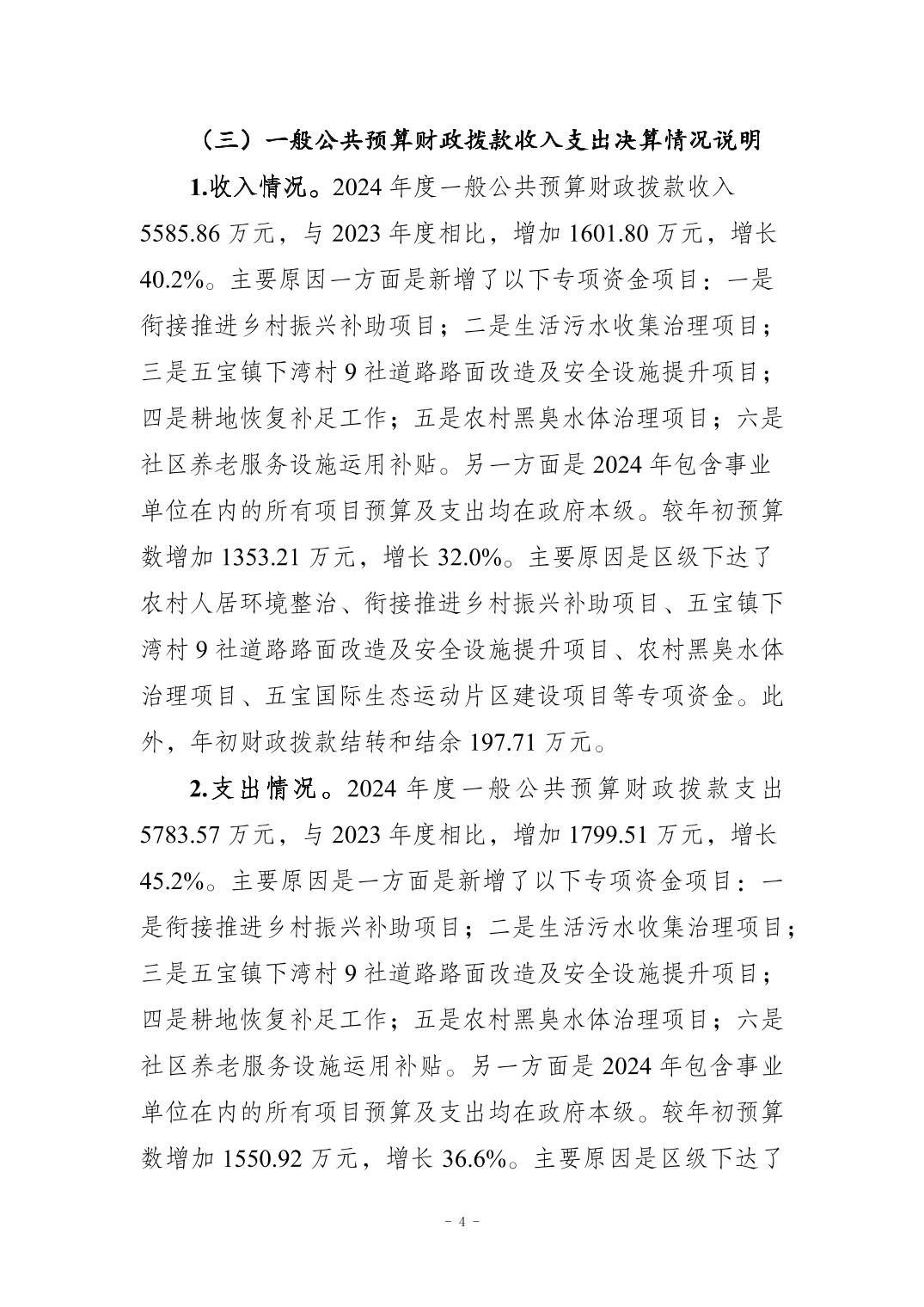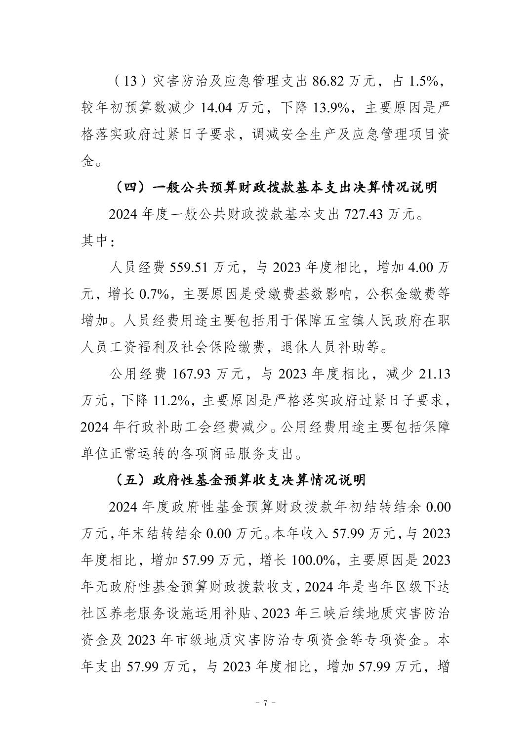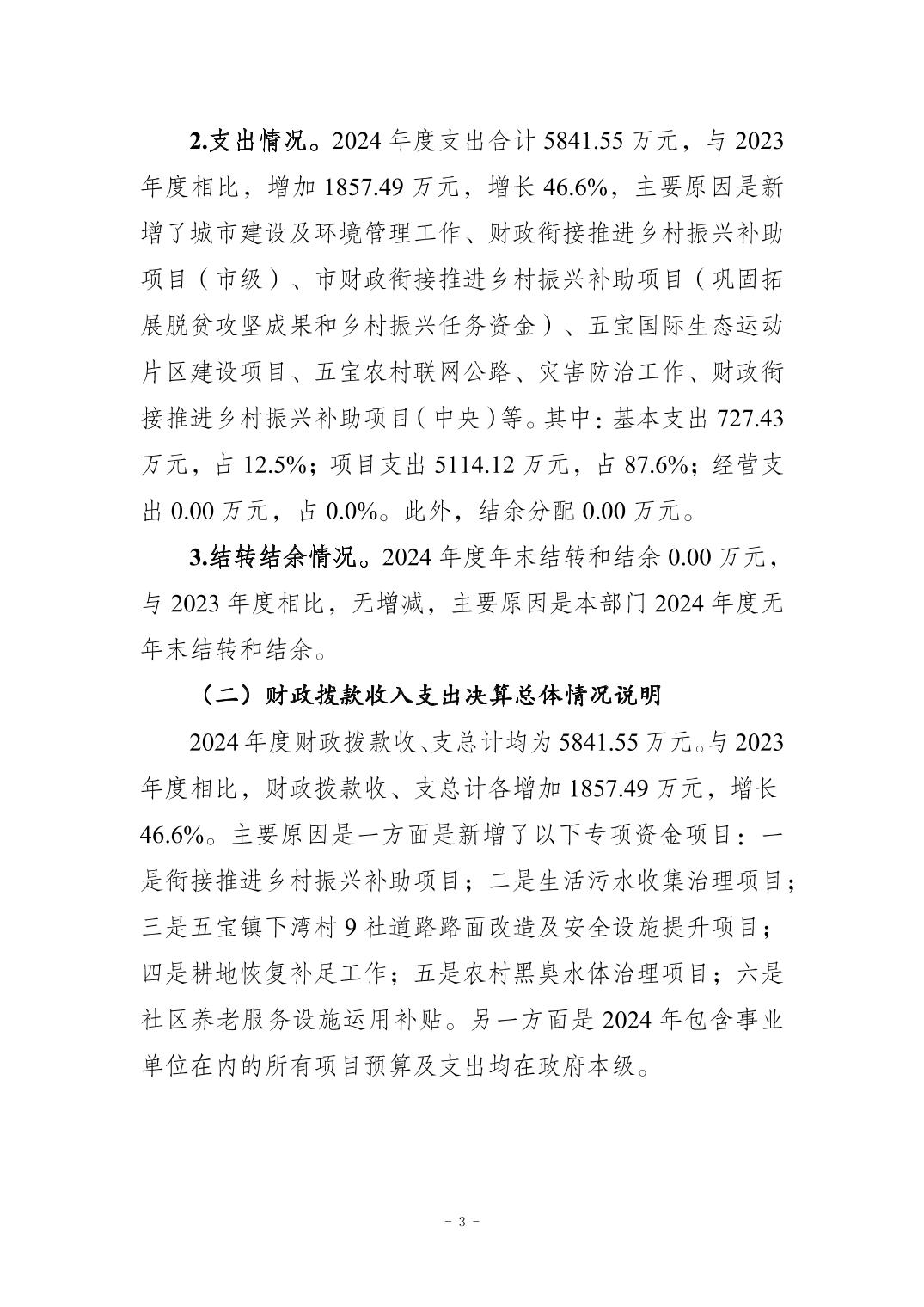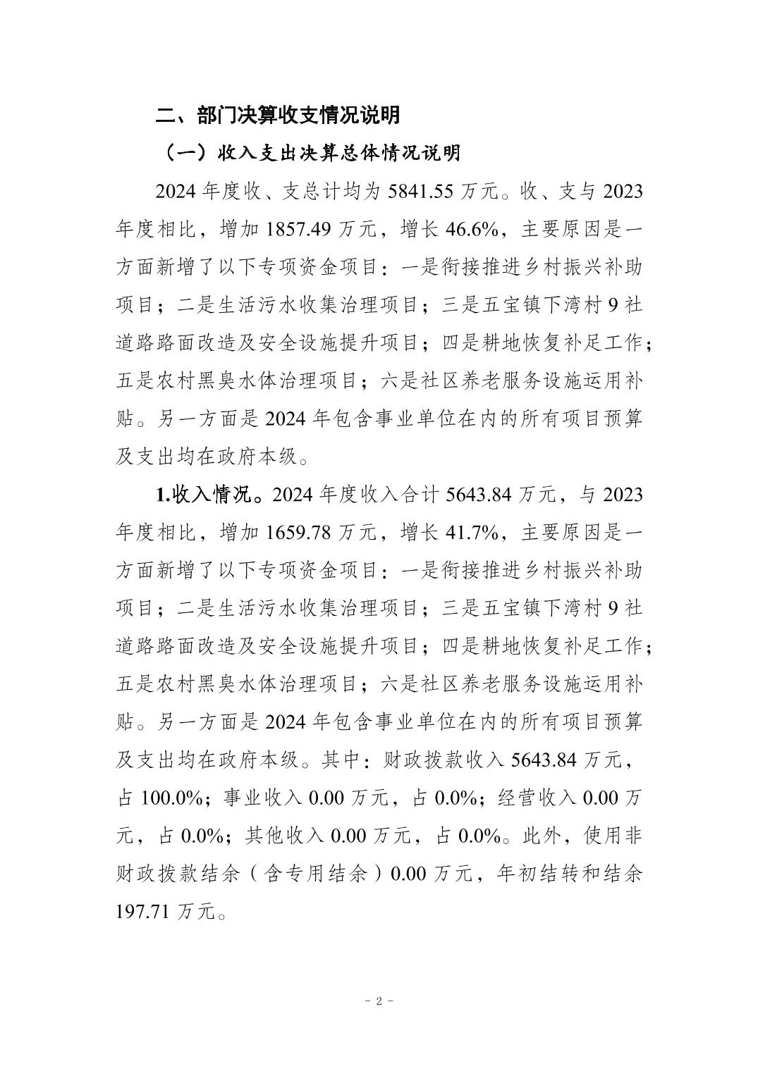 重庆市江北区五宝镇人民政府(本级)2024年度单位决算情况说明