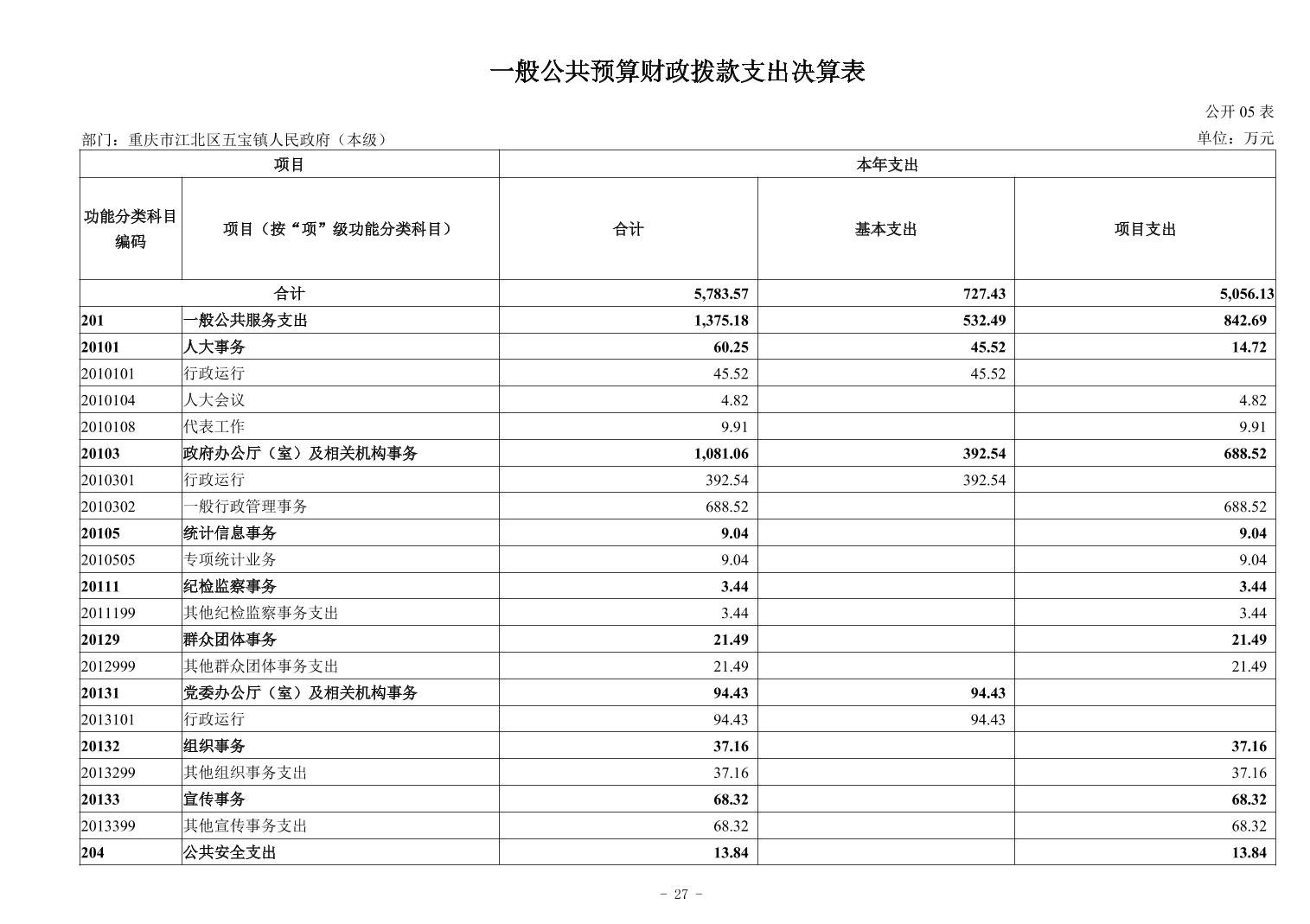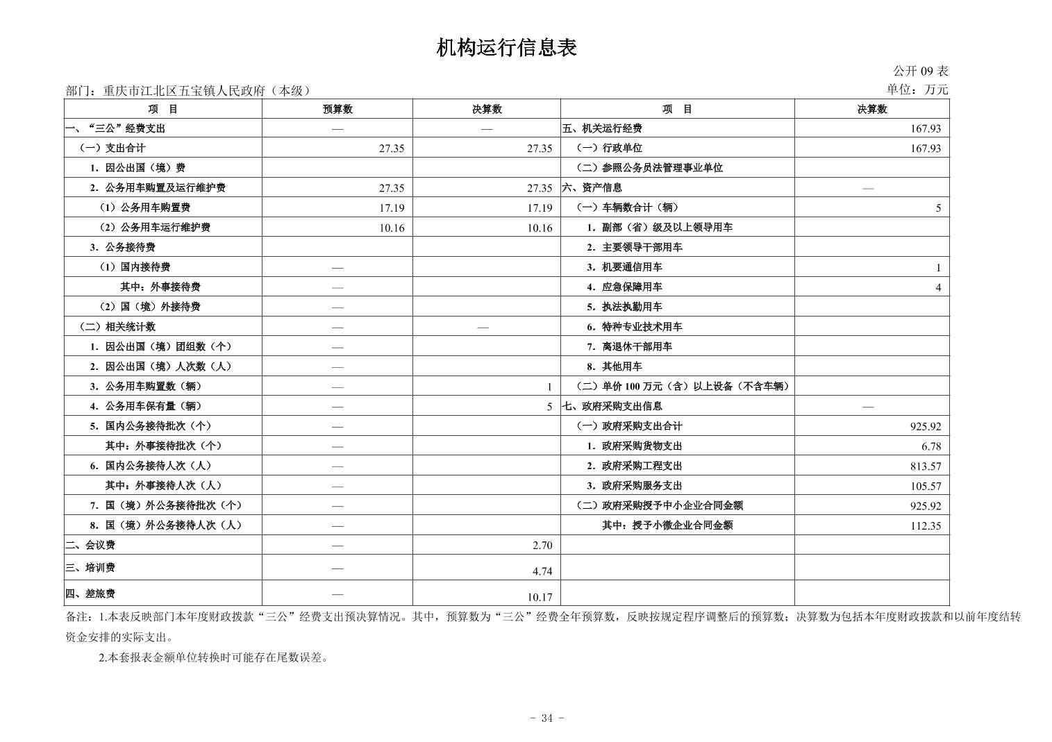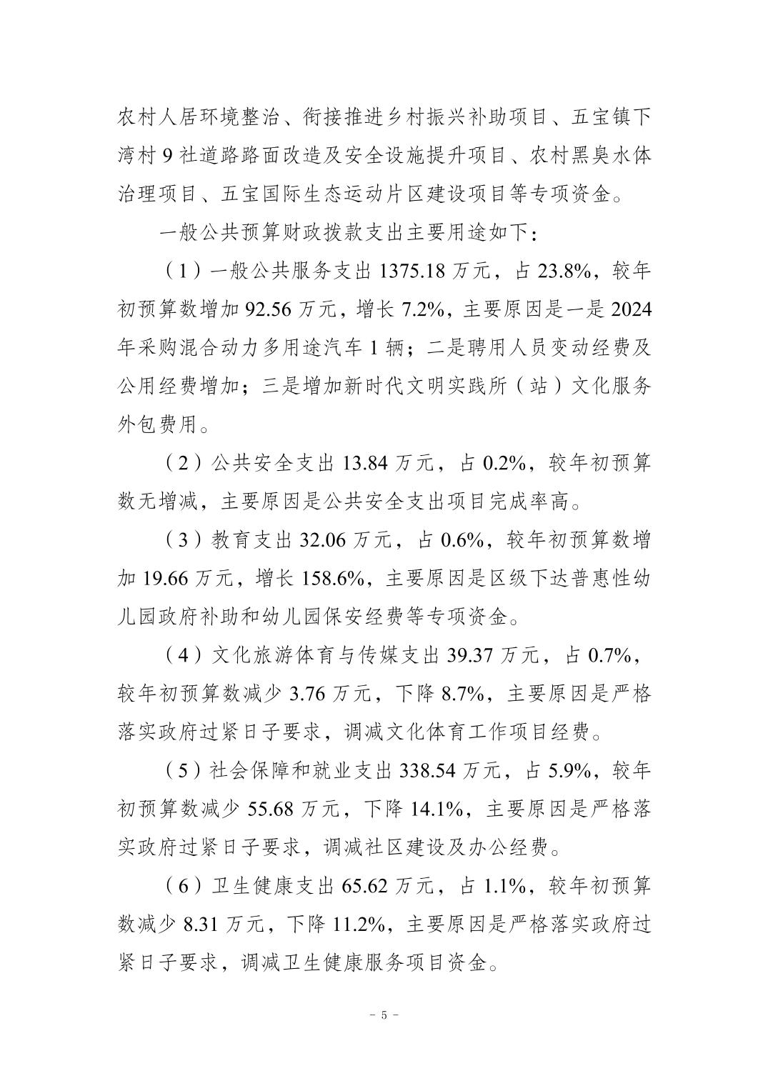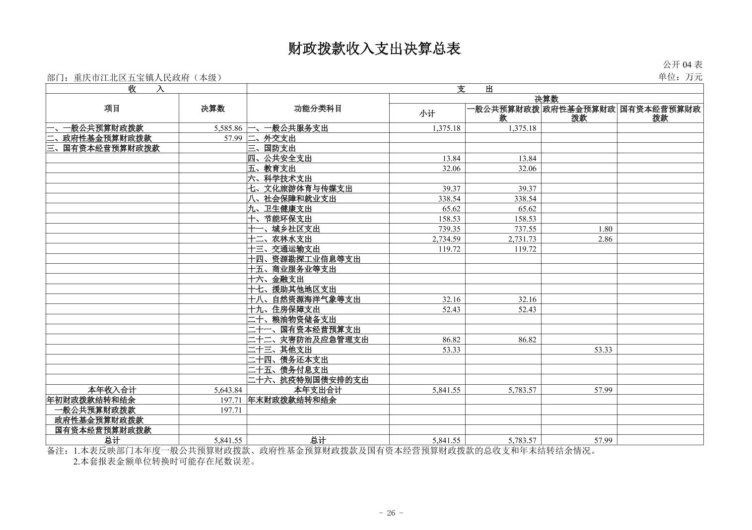 重庆市江北区五宝镇人民政府(本级)2024年度单位决算情况说明