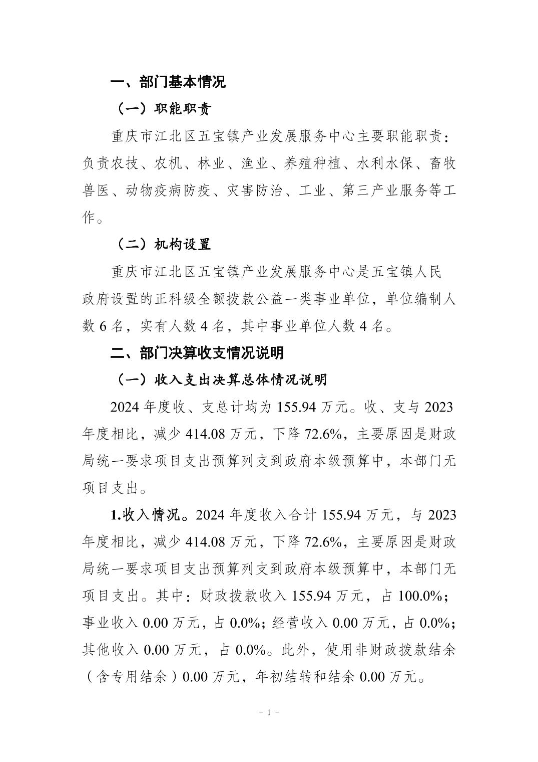 重庆市江北区五宝镇产业发展服务中心2024年度单位决算情况说明