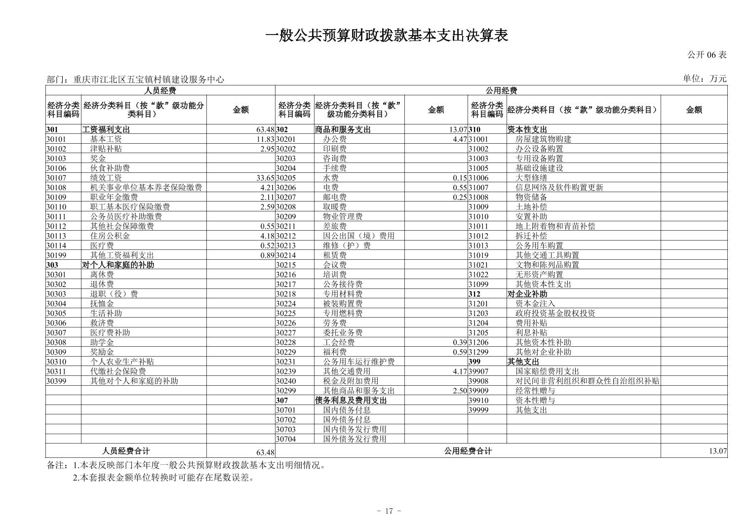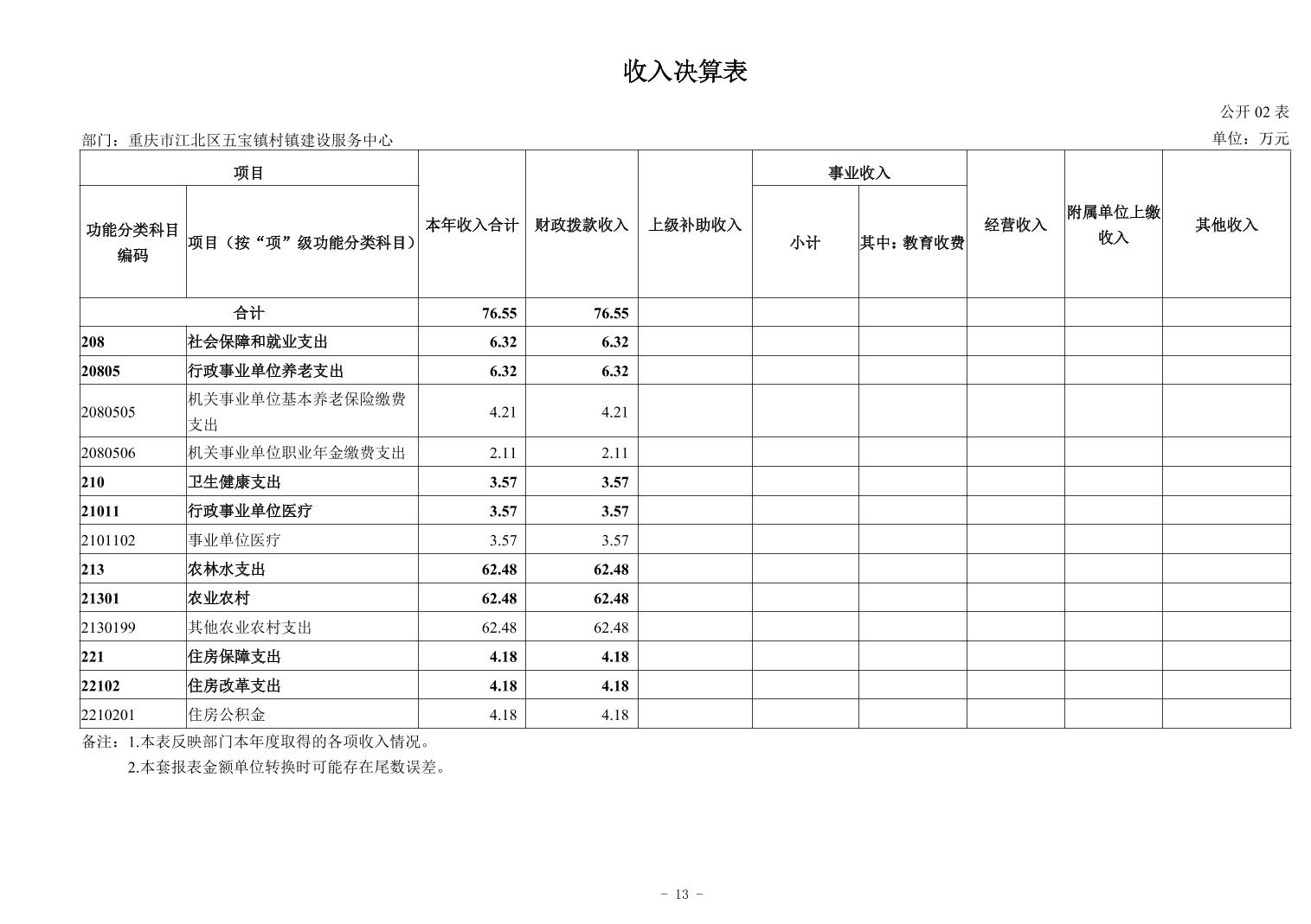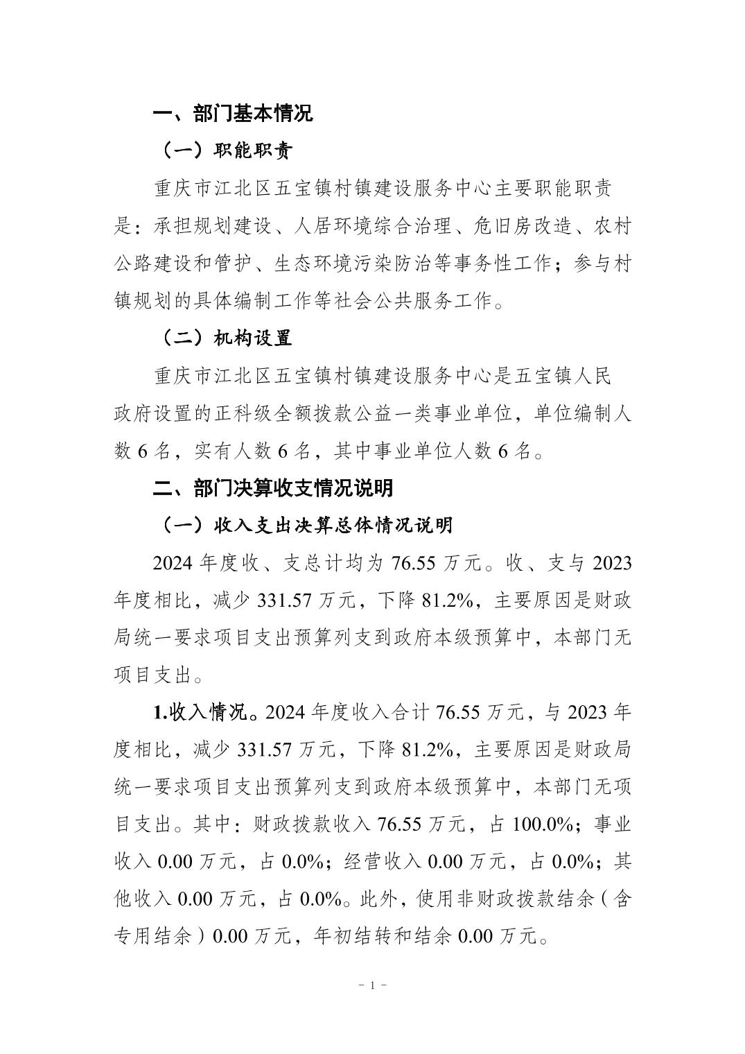 重庆市江北区五宝镇村镇建设服务中心2024年度单位决算情况说明