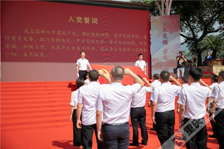 “我志愿加入中国共产党,拥护党的纲领,遵守党的章程……”在重温入党誓词环节,五宝镇20余名党员高举右手,在领誓人的带领下,面对鲜红的党旗,再次庄严宣誓,激励自己继续保持奋斗不息的精神,坚定自己的理想信念,忠实践行自己的入党誓词。