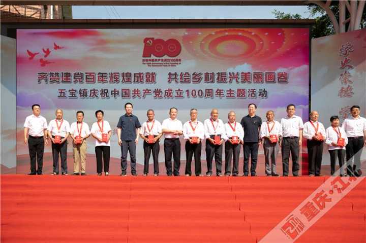 活动还举行了“光荣在党五十年”纪念奖章颁发仪式,并对2021年全镇优秀党员和党组织颁发表彰和奖牌。活动最后,全场100余名党员和群众一起,高唱《没有共产党就没有新中国》,用浓浓的深情赞美党、赞美祖国、赞美新时代。