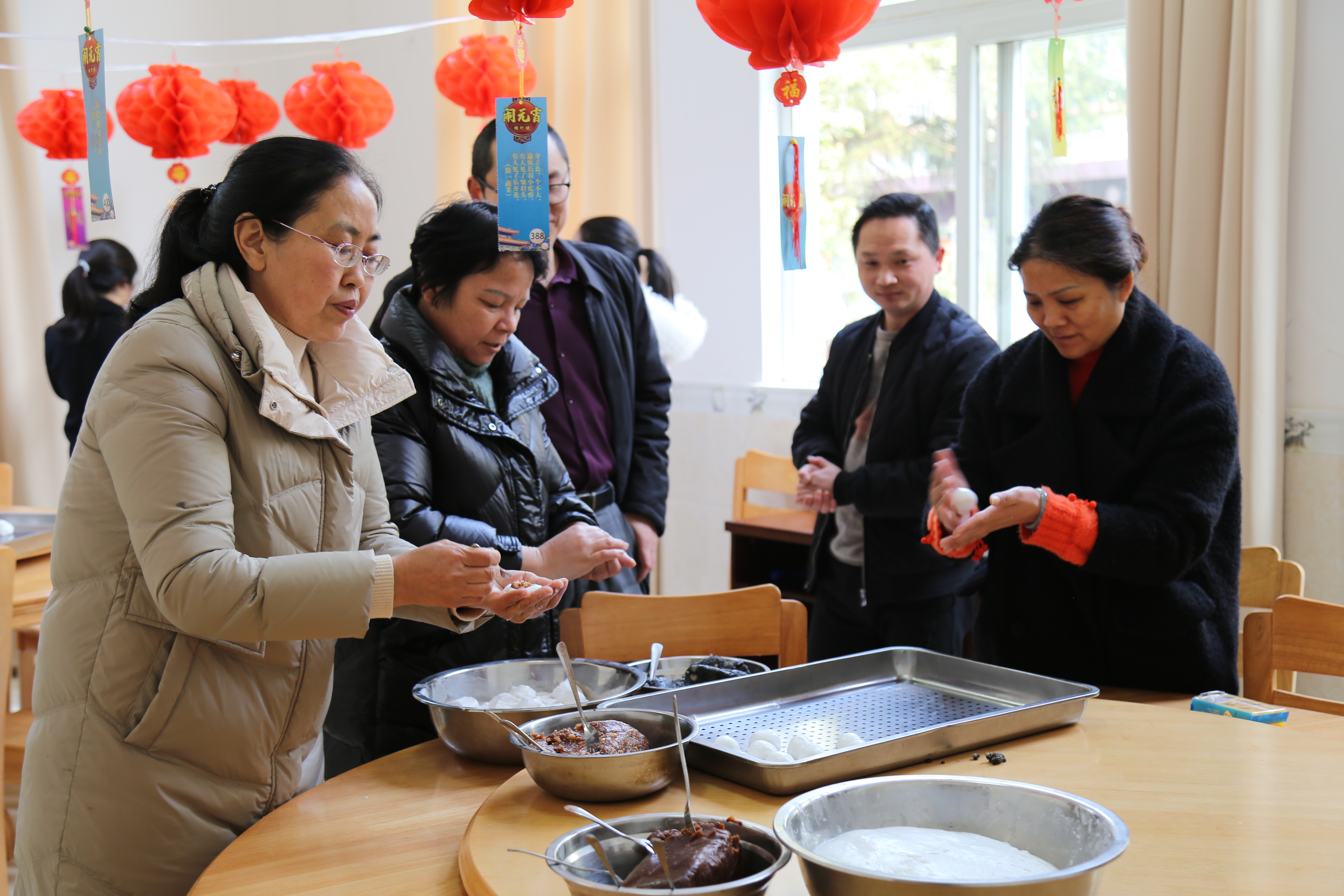 15日上午,多功能厅里早早就有居民到达了现场,本次活动共分为2个部分,分别为包汤圆、猜灯谜。在包汤圆、品汤圆环节,大家围在一起有人和面、有人包煮,俨然一个大家庭,欢声笑语一片,说热汤圆吃在嘴里,甜在心里;猜灯谜环节,内容涵盖了党风廉政文化、计生知识、保健知识、法律知识、体育、娱乐等方面,形式上除了字谜,还有词语迷、地名迷、专业名词迷等等,生动有趣,既具娱乐性,又具知识性。大家你一言我一语,在一个个灯谜下穿梭着,显得格外热闹喜庆,猜中答案的人们喜出望外地拿着谜面去兑换奖品。