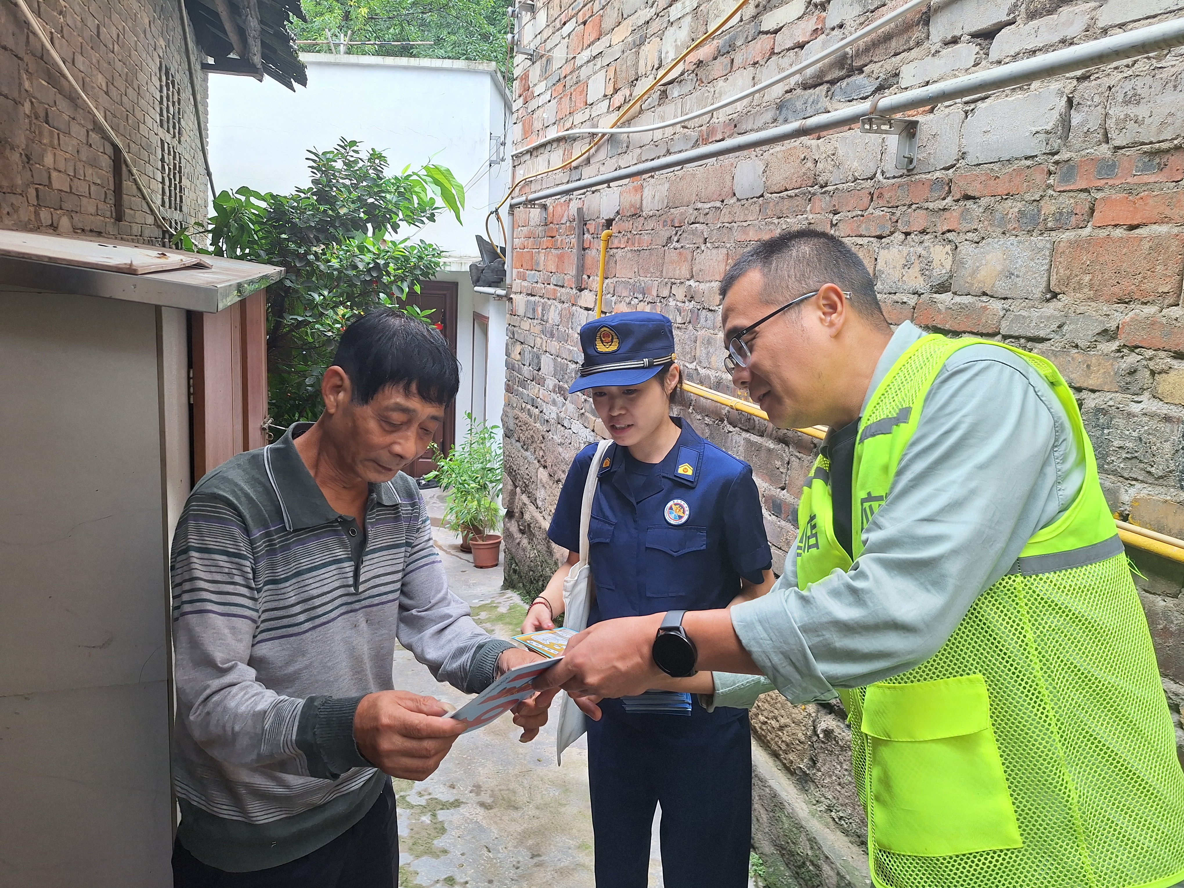 随后,工作人员在宣传点向居民们发放消防安全宣传手册,讲解火灾预防、发生时如何正确报警、逃生自救等知识,解答居民们提出的各种问题。“老房子安全隐患多,谢谢政府的宣传,让大家都更加重视安全。”老人专注地看着手册并说道。消防人员还进入居民常聚集的场所,如理发店等,向店内的居民发放宣传资料。