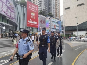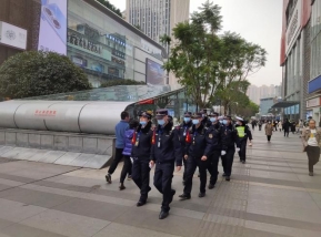 观音桥商圈作为世界知名商圈,商业体量大、热度高,节假日期间人流量大,区商圈办始终高度重视安全问题,坚持将业务工作与平安建设同研究、同部署、同推动,秩序力量包括城管队员、综治队员、保安队员,商圈平安稳定工作由观音桥商圈执法大队具体负责,每周会同观音桥商业区治安派出所研究、调度相关工作,常态化开展社会治安联防联控,建立应急管理工作机制,在重大节假日、活动期间我办会增加巡防巡控力量。同时,区公安分局依托“专业+机制+大数据”警务运行模式,不断优化“巡防处”一体化工作机制,充分调动公安民警、辅警、维稳队员等群防力量,合理编组,对观音桥商圈实行7×24小时全覆盖巡逻防控,确保对各类突发案事件进行“早、小、快”应急处置,有效压降警情,维护正常治安秩序。我办还督促辖区20家大型商场、大型酒店、人员密集场所,共抽调组织328名应急管理队伍,配备307件(套)应急防爆设备,遇到应急突发事件,按照“位置相邻、行业相近、业态相似”的原则,由区商圈办统一调度安排使用。