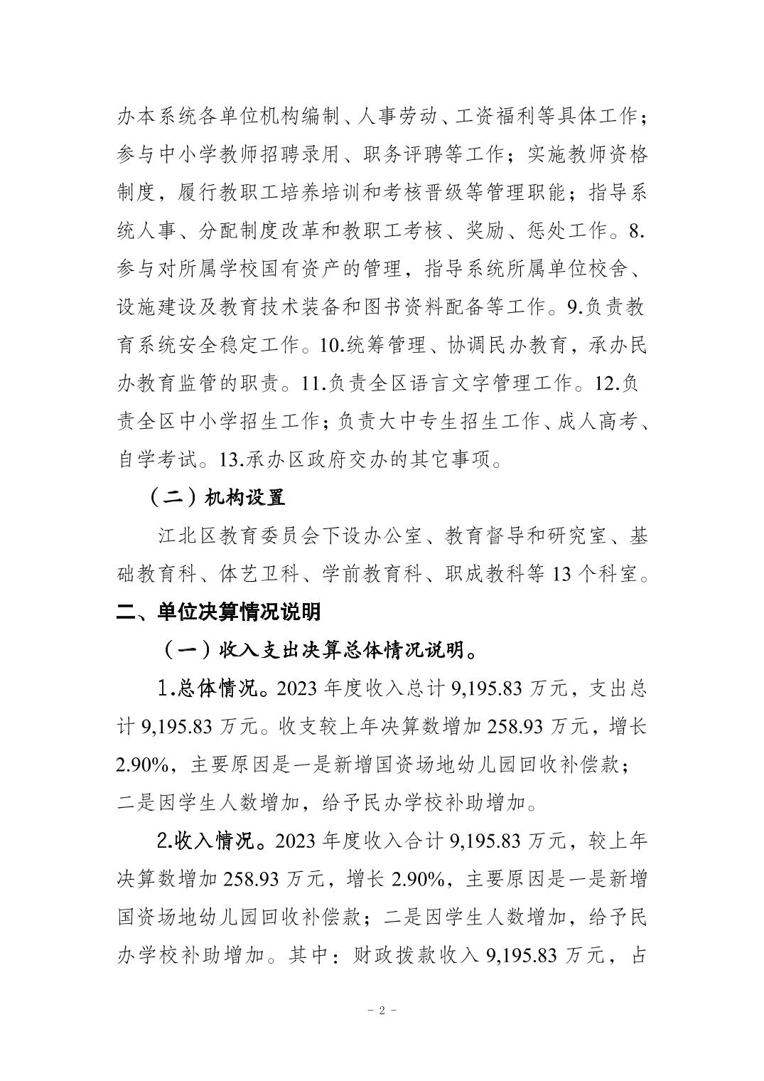重庆市江北区教育委员会(本级)2023年度决算公开说明