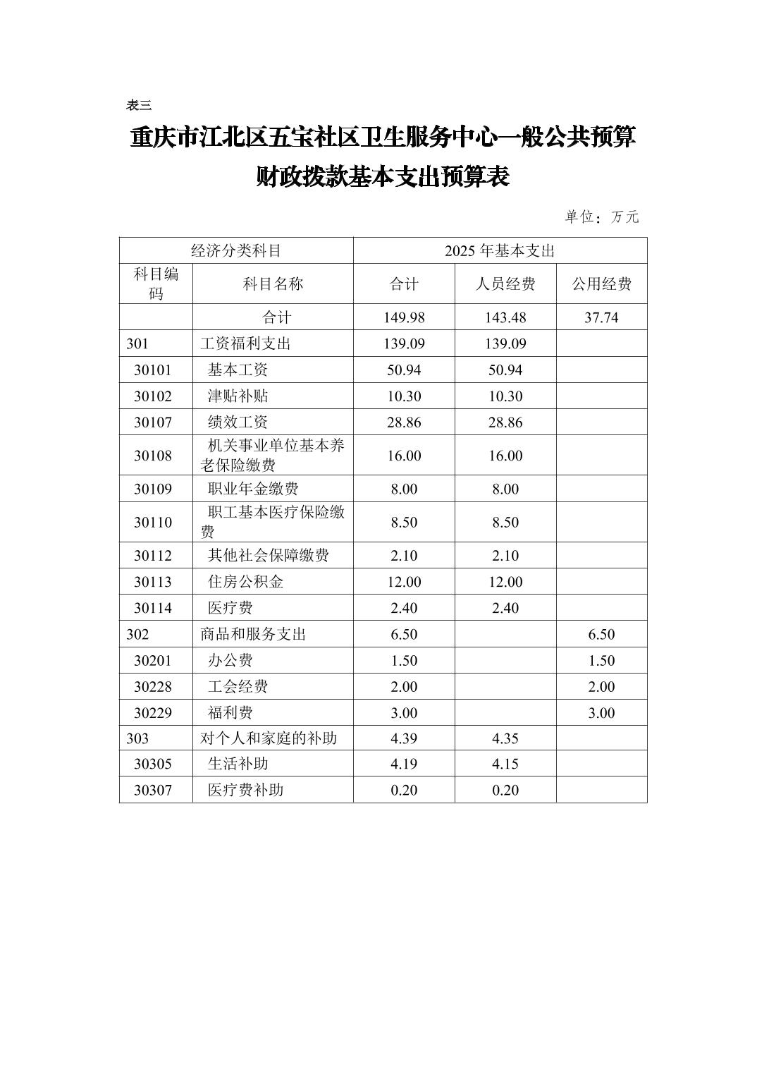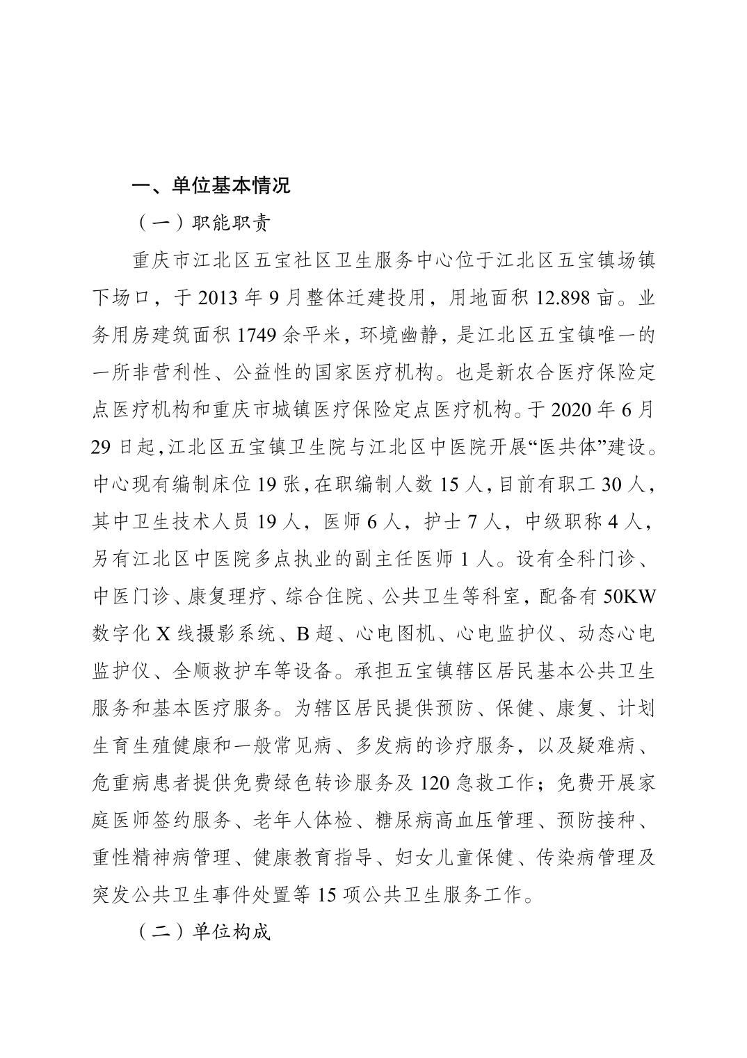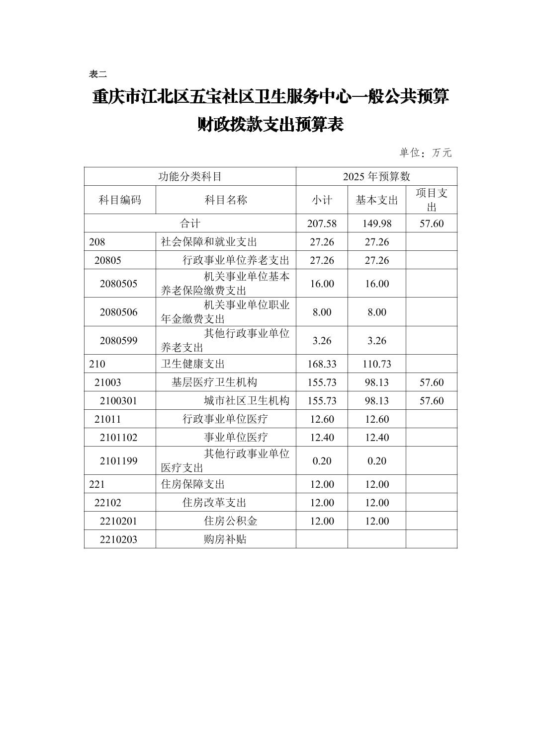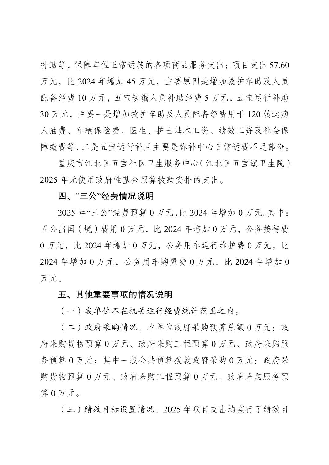 重庆市江北区五宝社区卫生服务中心(江北区五宝镇卫生院)2025年单位预算情况说明