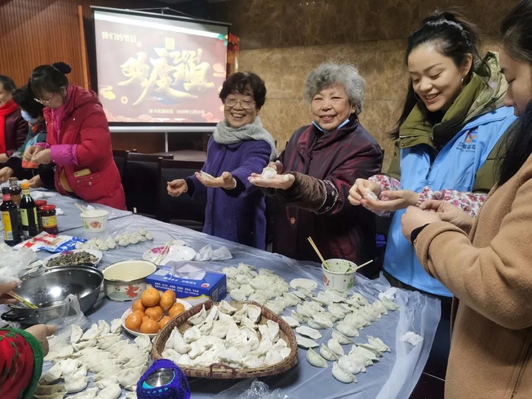 活动当天,社区多功能室俨然变身成社区厨房,由桌子临时拼凑成活动面板,大家捋起衣袖分工协作,相互切磋包饺子的技巧,彼此比较饺子的形状,有说有笑,热闹非凡。