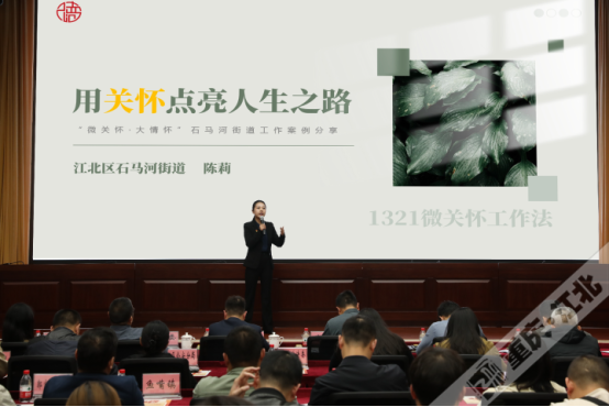 4月9日下午,江北区“微关怀·大情怀”“微关怀”工作法经验交流演讲比赛在区会议中心举行。石马河街道文化中心工作人员陈莉荣获江北区第一名