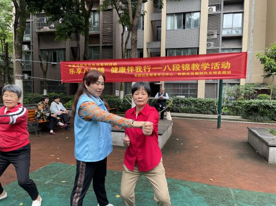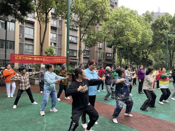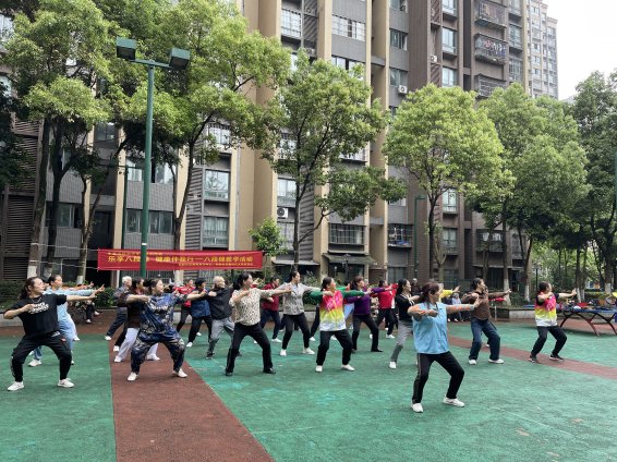 通过此次八段锦教学活动进一步扩大覆盖范围和人群,鼓励引导居民积极参加体育锻炼,逐步形成全民参与、快乐健身的新风尚,为建设品质社区贡献力量。