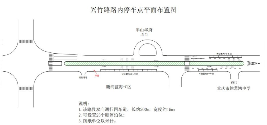 为治理城市道路停车乱现象,规范路内停车秩序。根据《重庆市停车场管理办法》相关规定,江北区城市管理局会同江北区公安分局交巡警支队、观音桥街街道办事处,结合当地交通状况、周边停车场情况等综合因素,拟在兴竹路设置路内停车泊位。